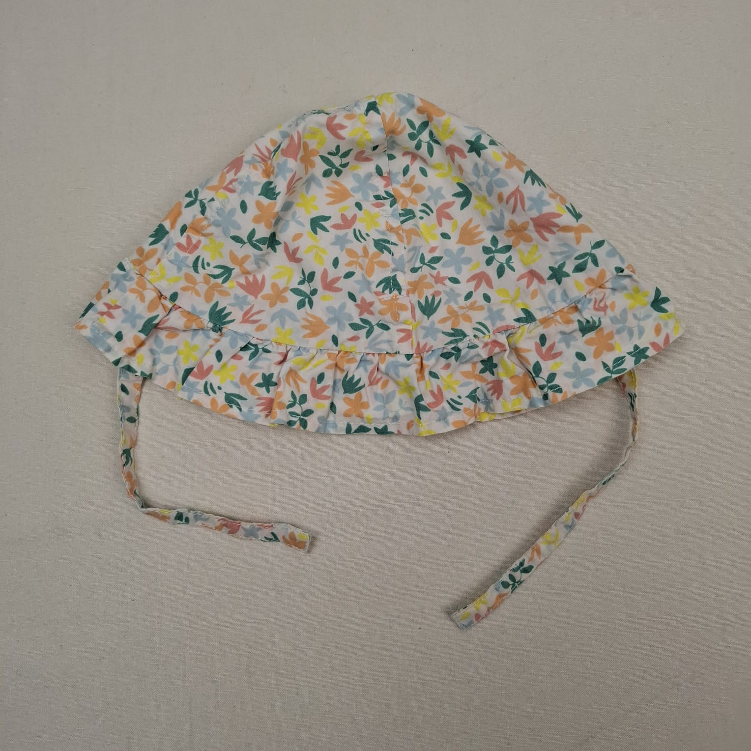 Autres commentaires : Bob blanc avec des motifs de fleurs, attachable avec une lanière
