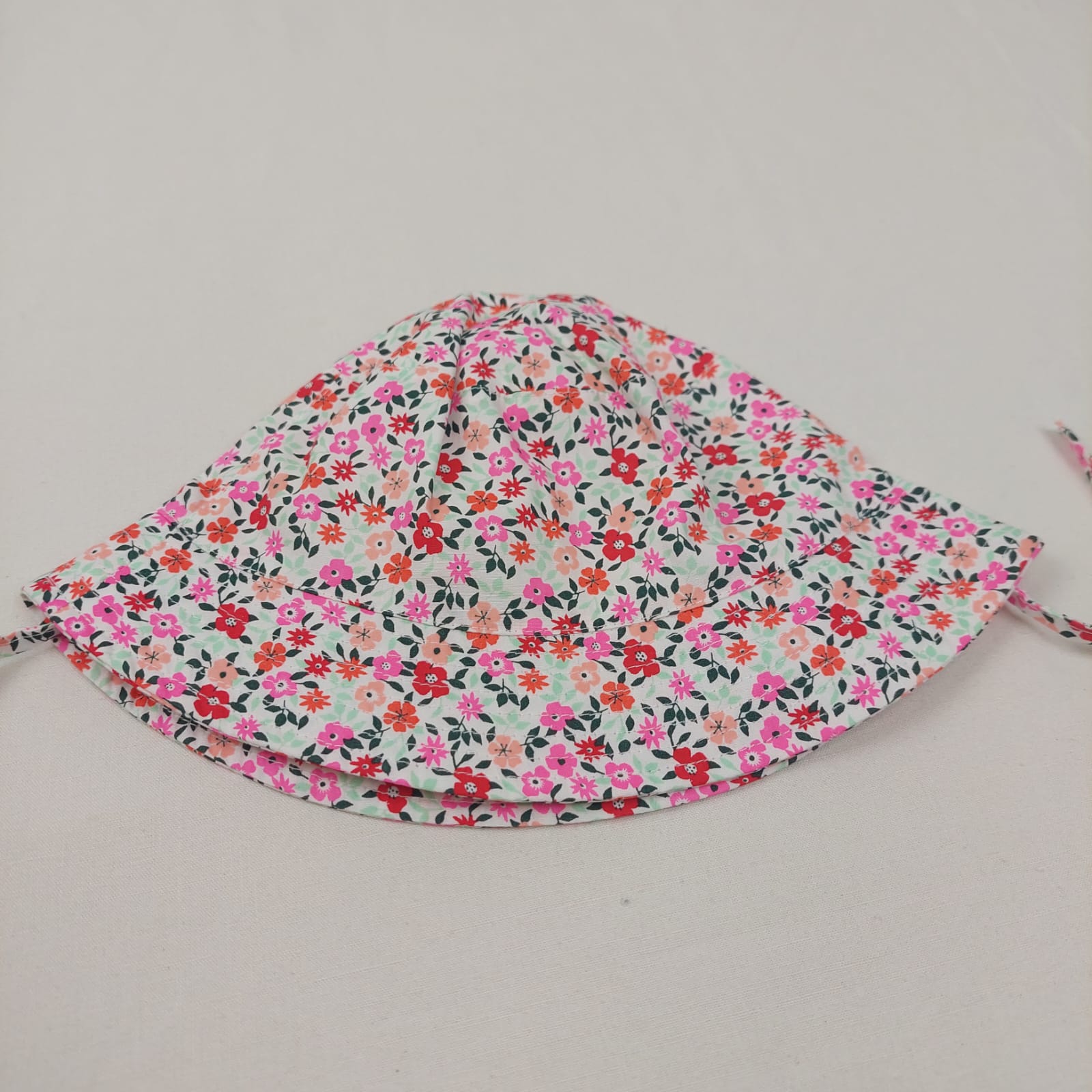 Autres commentaires : Bob à ficelles blanc motifs de fleurrouge, rose, orange, interieur doublé