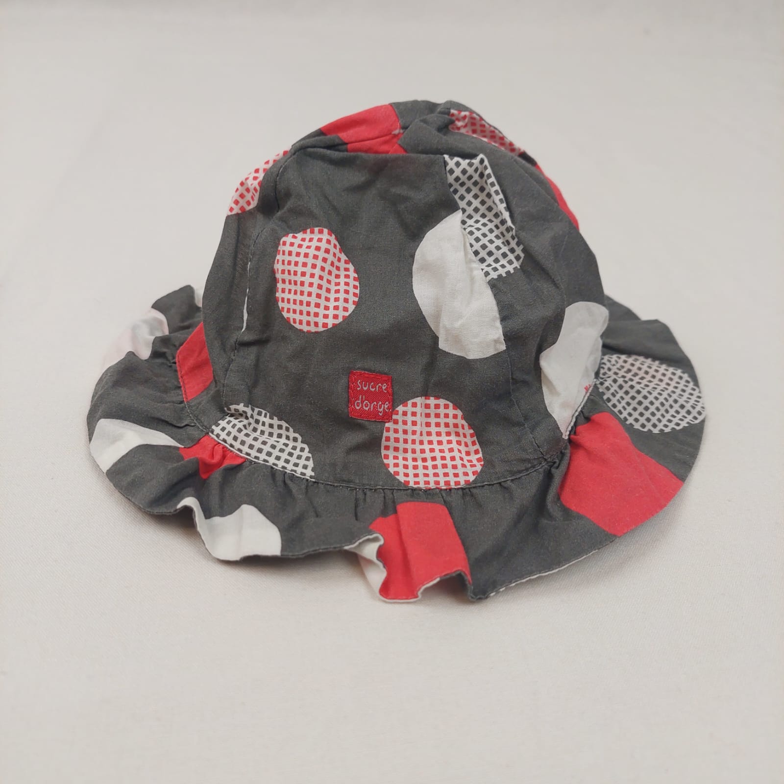 Autres commentaires : Bob gris motifs round rouge et blanc, élastique