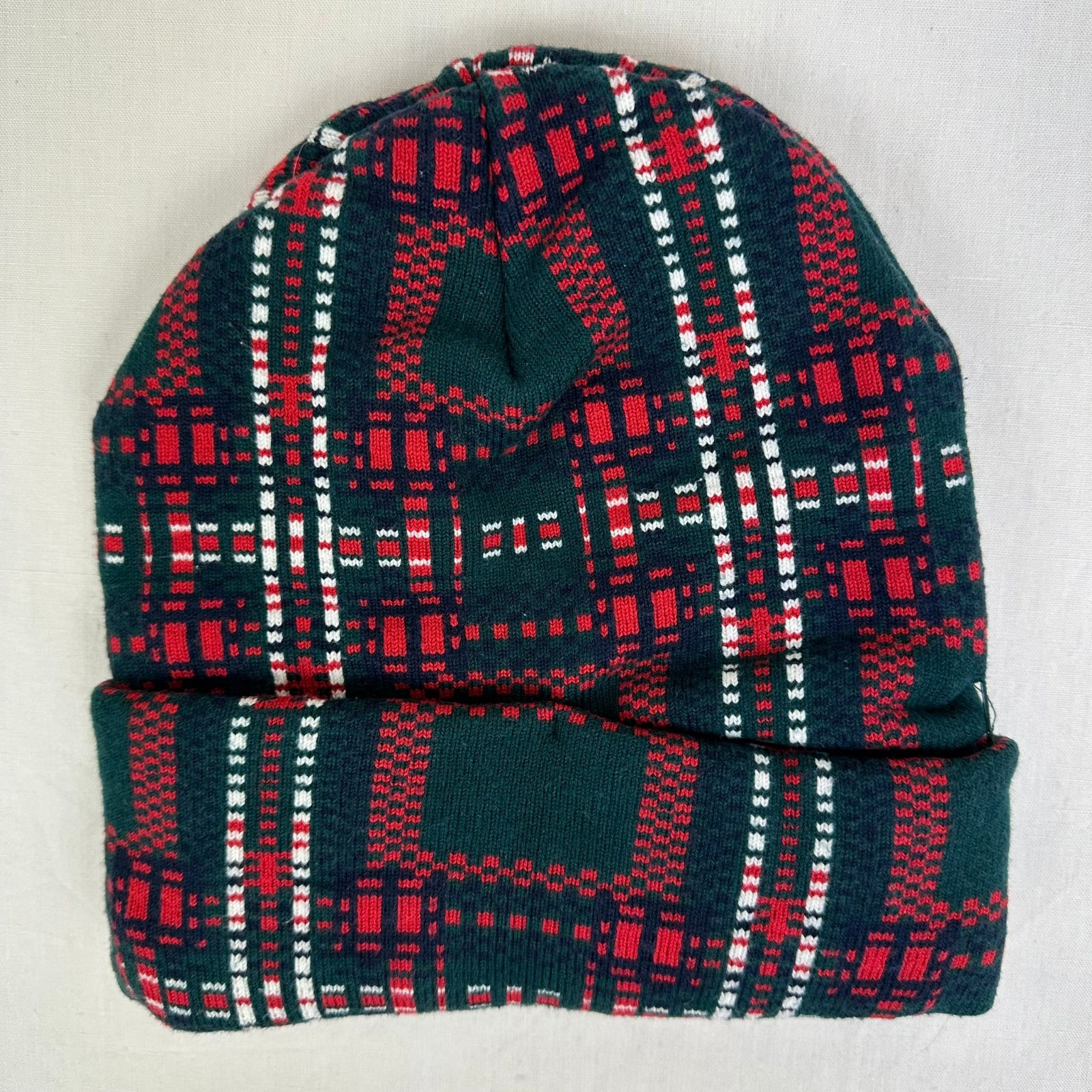 Autres commentaires : 38% acrylique, 3% polyester et 1% elasthanne. Bonnet vert en écossais vert, blanc et rouge.