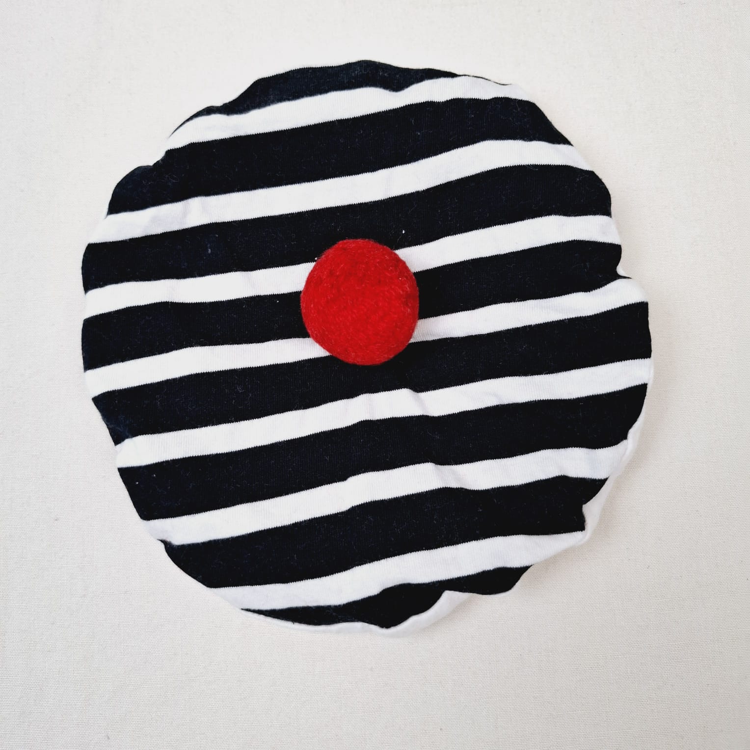 Autres commentaires : Béret blanc et marine avec pompon rouge, 5% élasthanne, taille T2 (12-23 mois).