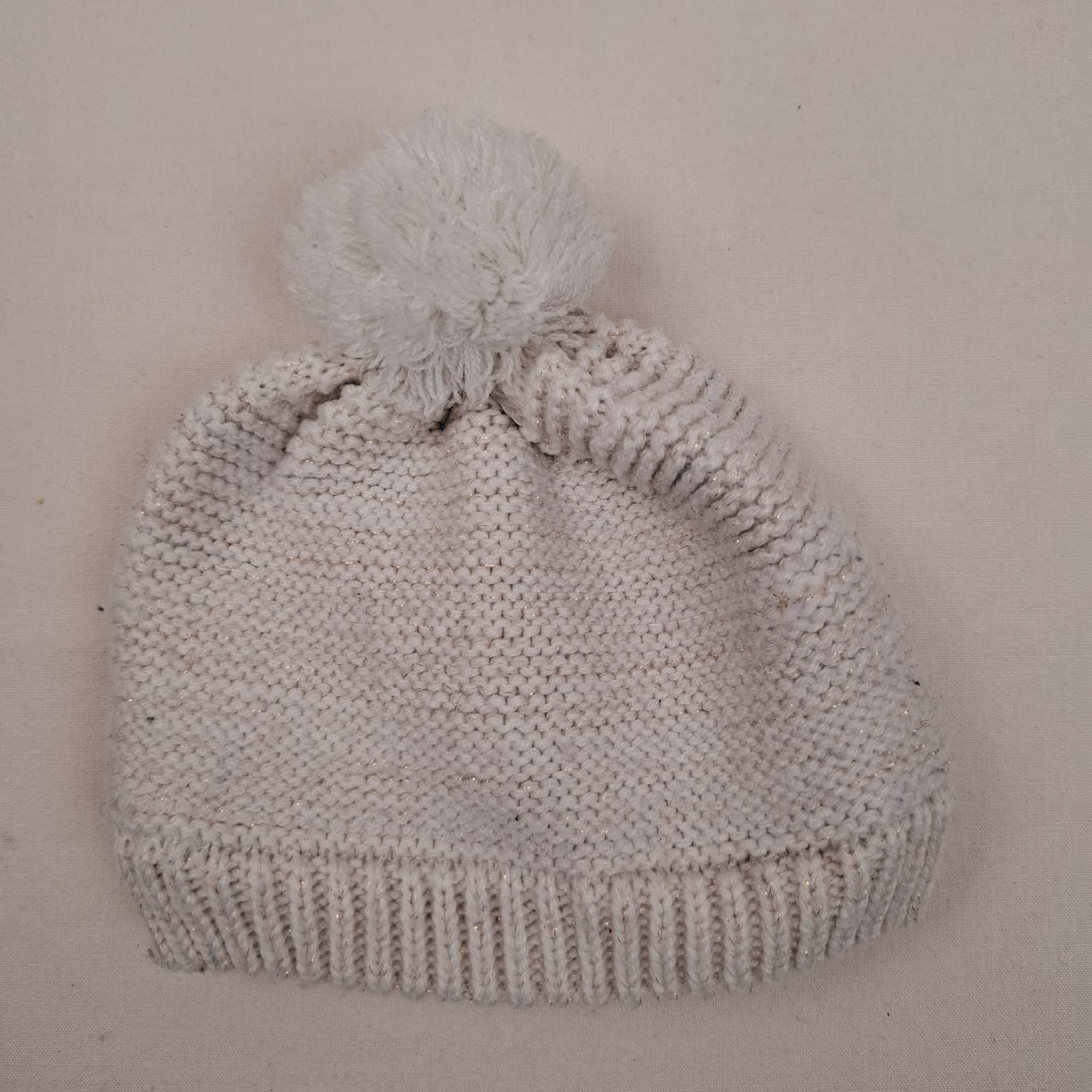 Autres commentaires : Bonnet blanc avec pompon, doublure en polaire.