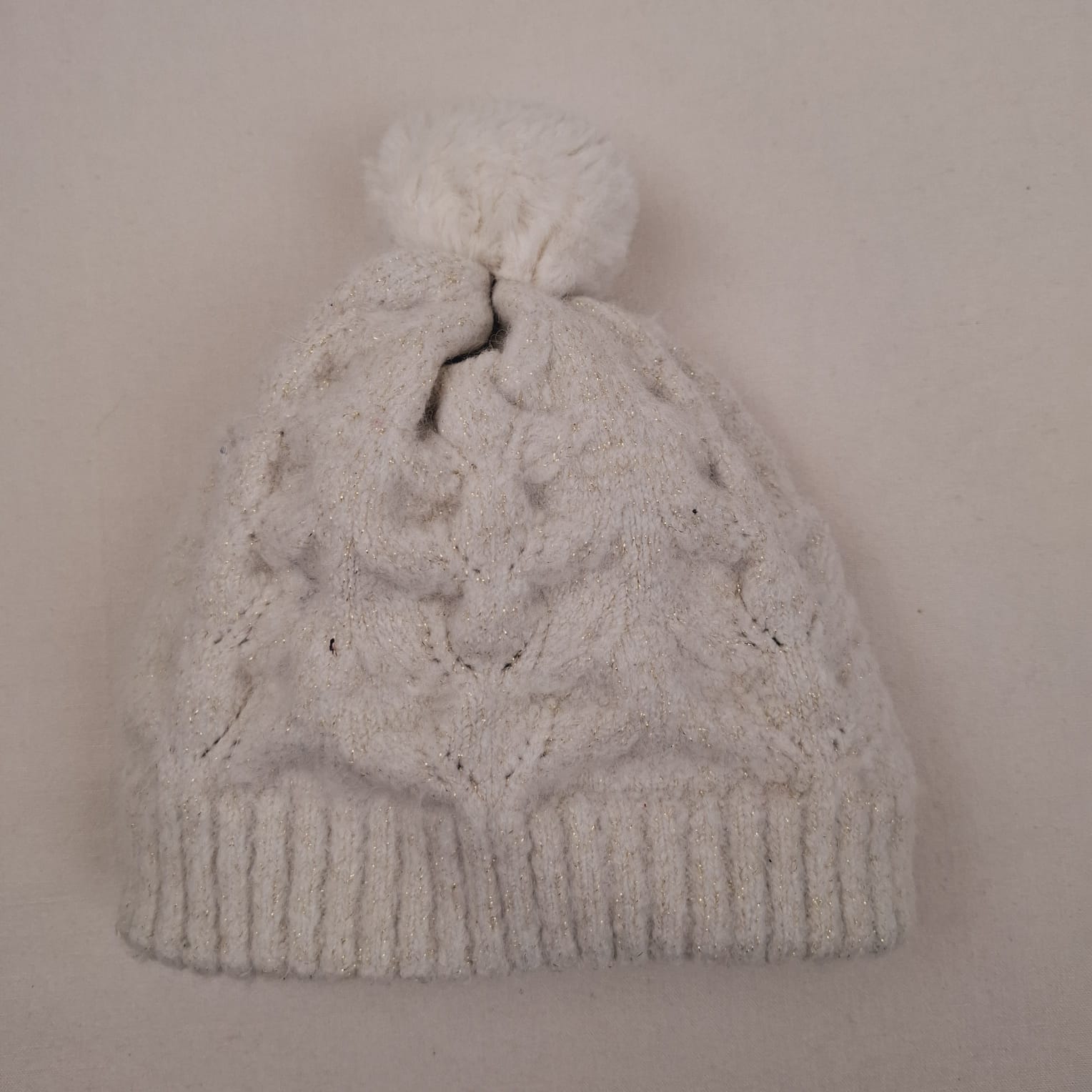 Autres commentaires : Bonnet blanc avec pompon, doublure en polaire.