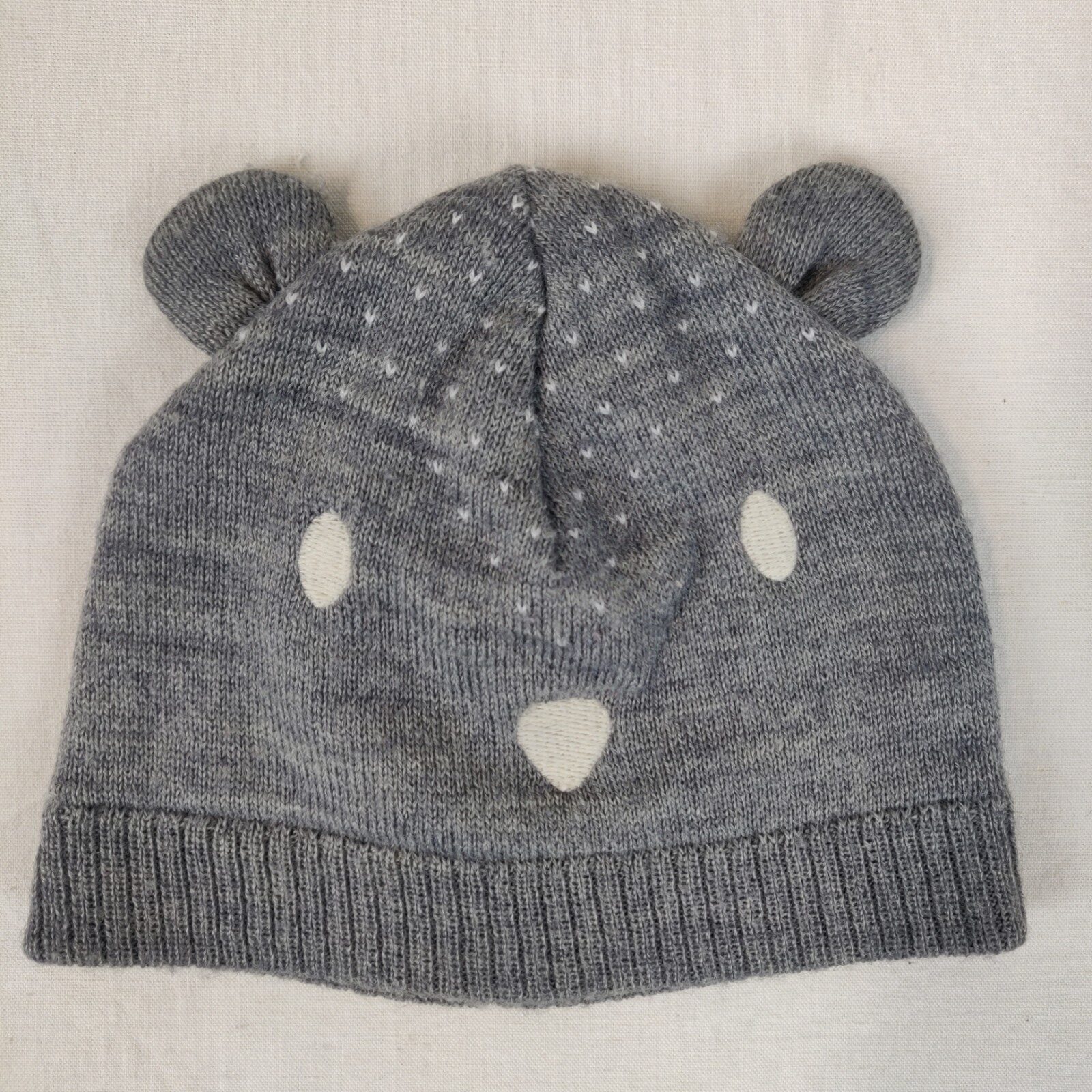 Autres commentaires : Chapeau gris avec oreilletes. Contient 50% de laine et 50 % acrylique.