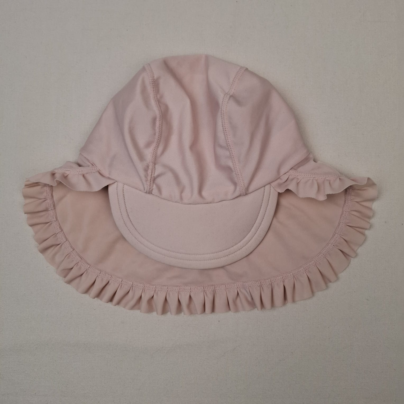 Autres commentaires : 19% élasthanne. Casquette souple en textile rose protégeant des UV, visière devant et prolongement sur l’arrière pour protéger le visage et la nuque, UPF 50.