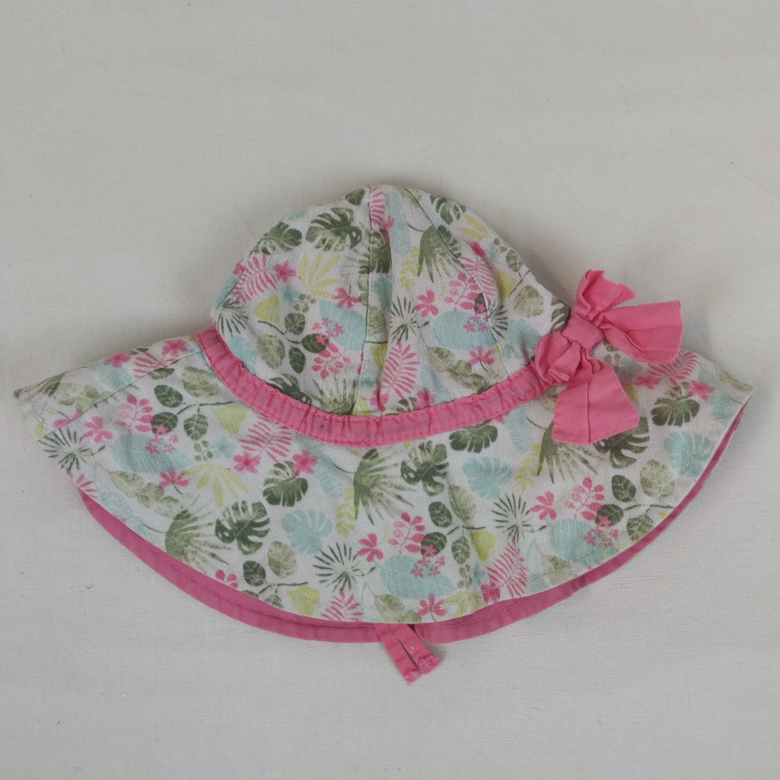 Autres commentaires : Chapeau style capeline rose en fleurette vert et un petit noeud rose .