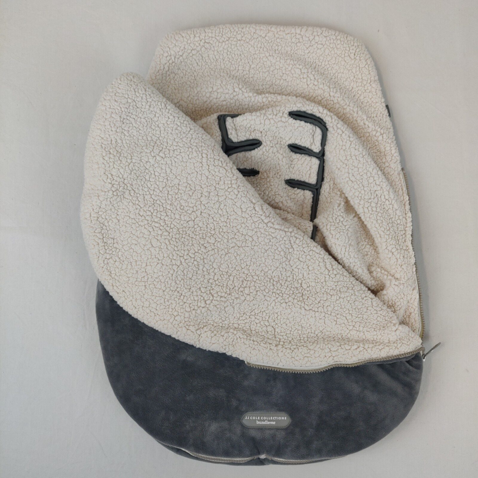 Autres commentaires : Chancelière doublée en fourrure synthétique en polaire grise – accessoire pour poussette (jusqu’à 12 mois). Double ouverture latérale zippée.