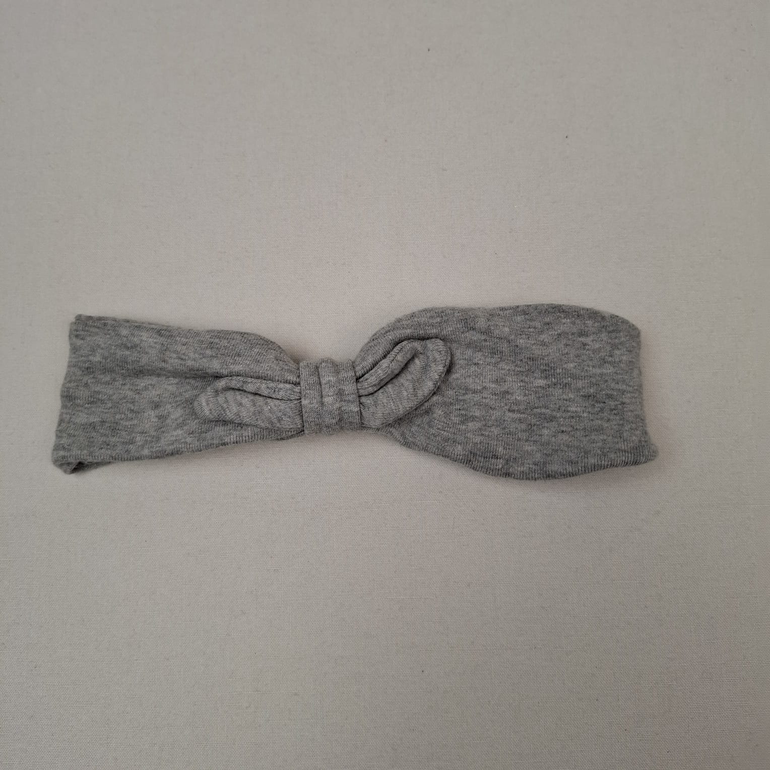 Autres commentaires : Bandeau pour cheveux, gris uni, élastiqué avec noeud sur le devant, taille 2.