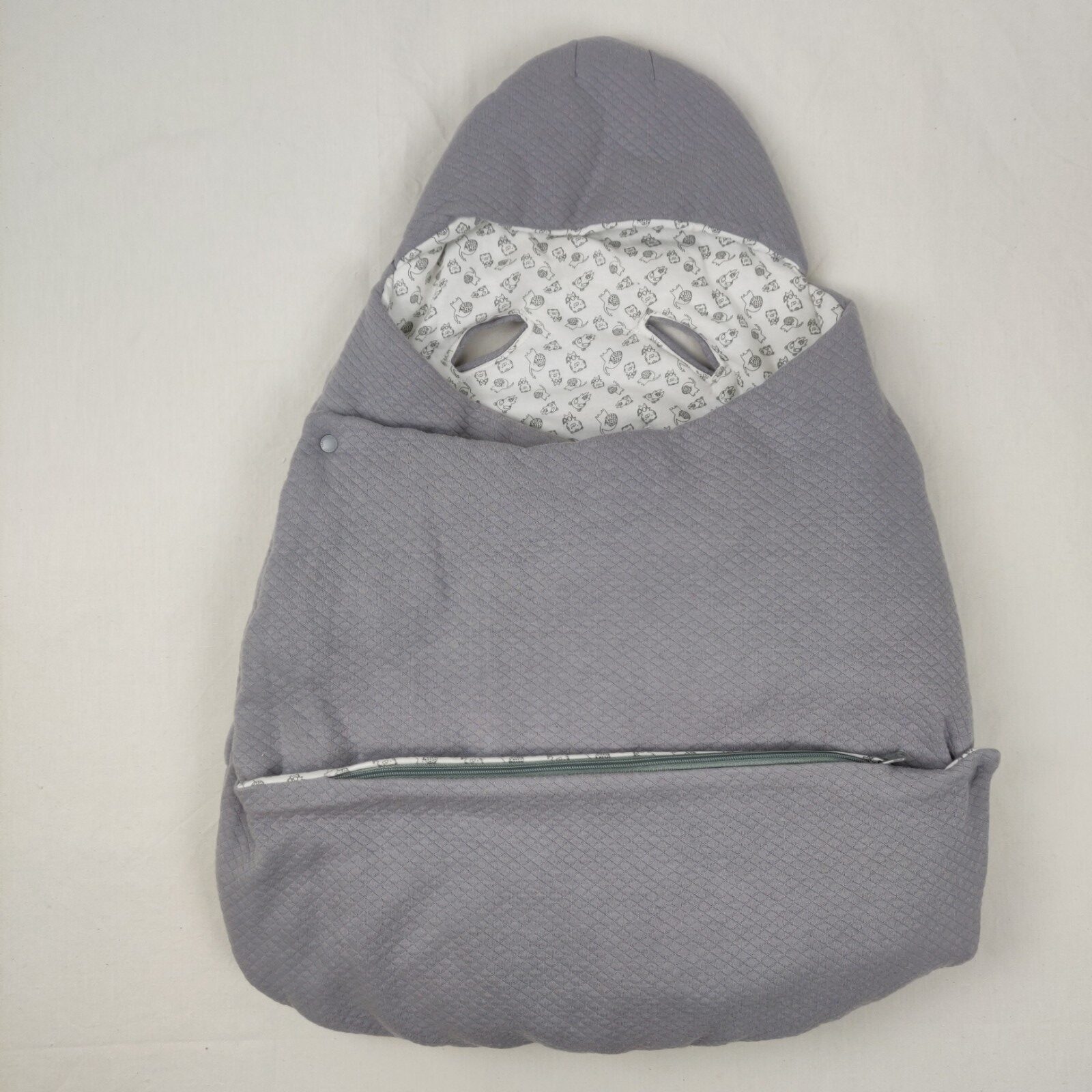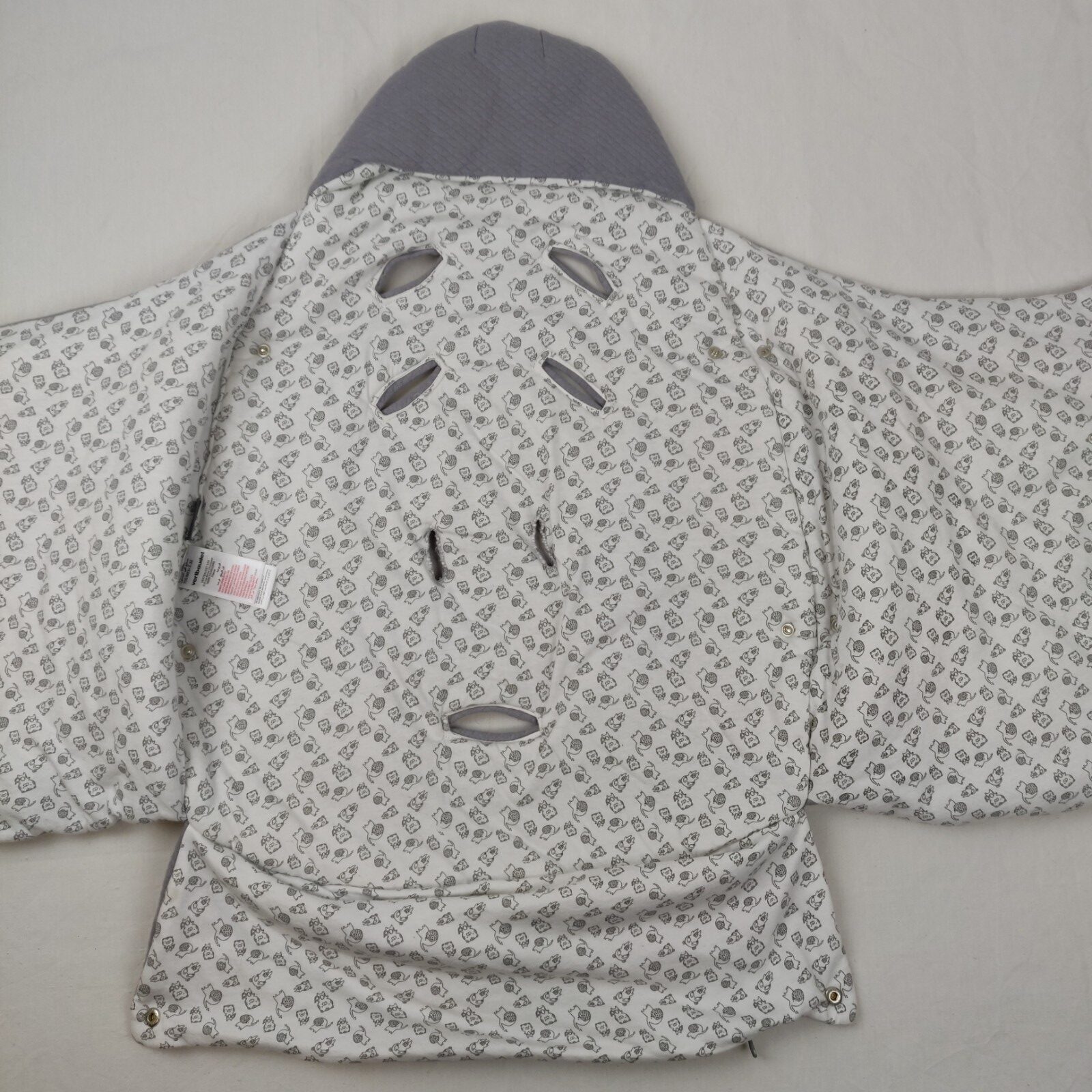 Autres commentaires : Chancelière premier âge doublure jersey de coton et garnissage polyester. Deux trous rajoutés (travail soigné) pour attacher à une poussette. Parfait état par ailleurs. TOG 3.32 – très chaud –