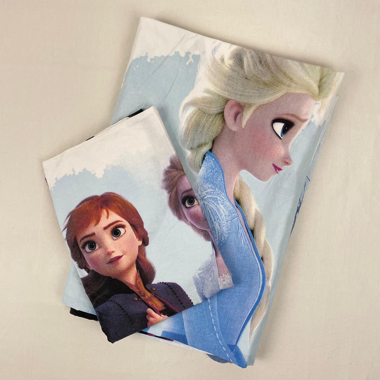 Parure de lit La Reine des Neiges 140×200 cm : housse de couette et oreiller carré