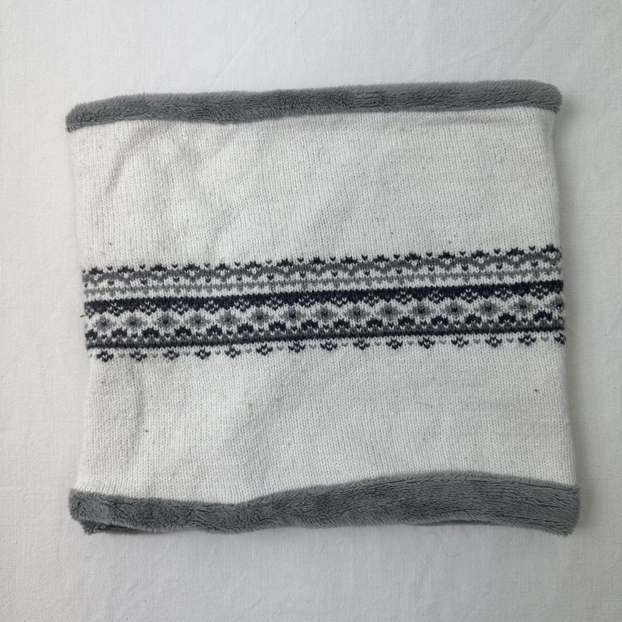 Autres commentaires : Echarpe cache cou blanc avec motif liberty gris.Petit défaut: petite tâche orangée discréte di 1 cm sur la devanture.