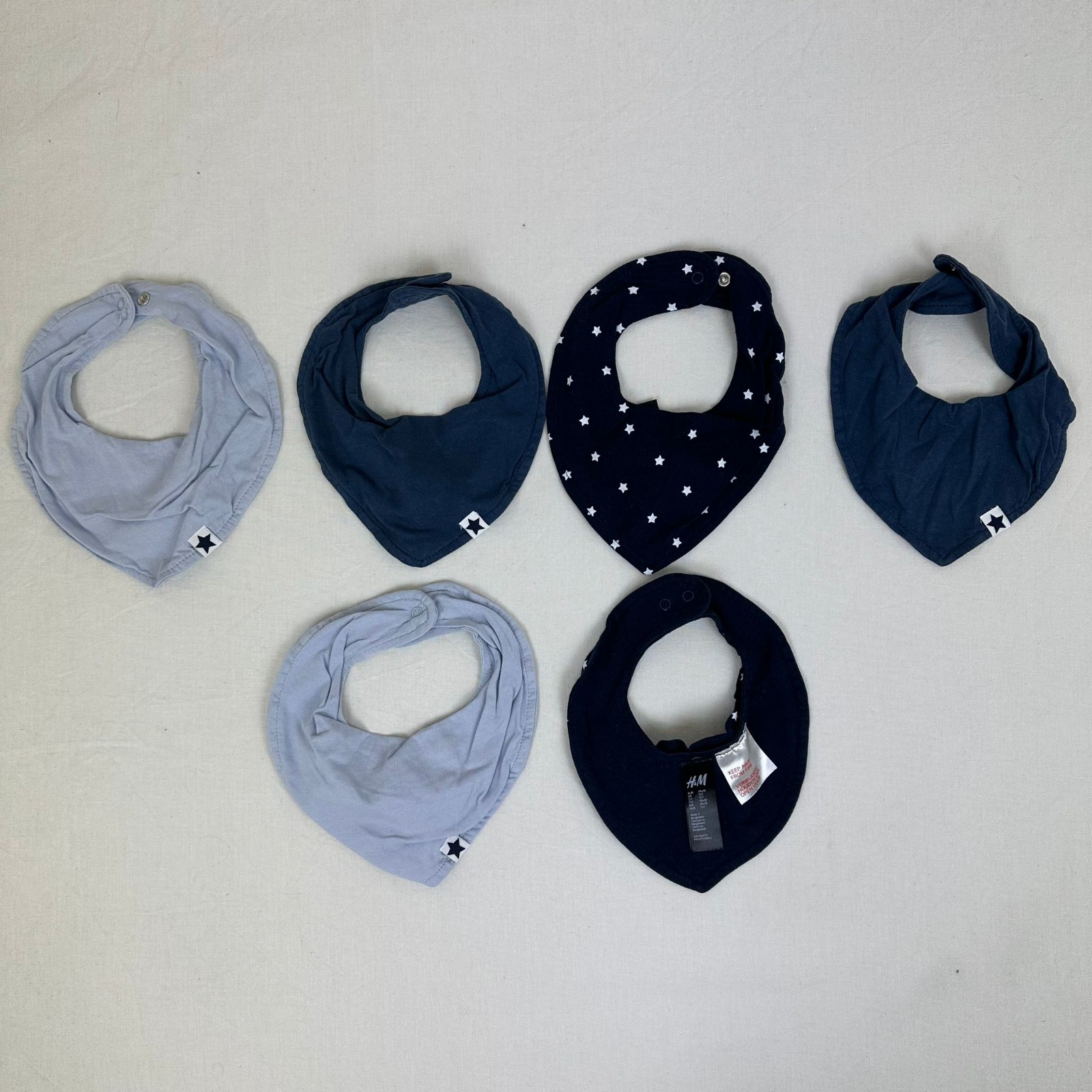 Autres commentaires : 6 foulards triangulaire avec une fermeture par boutons pressions. Taille de 0 à 6M