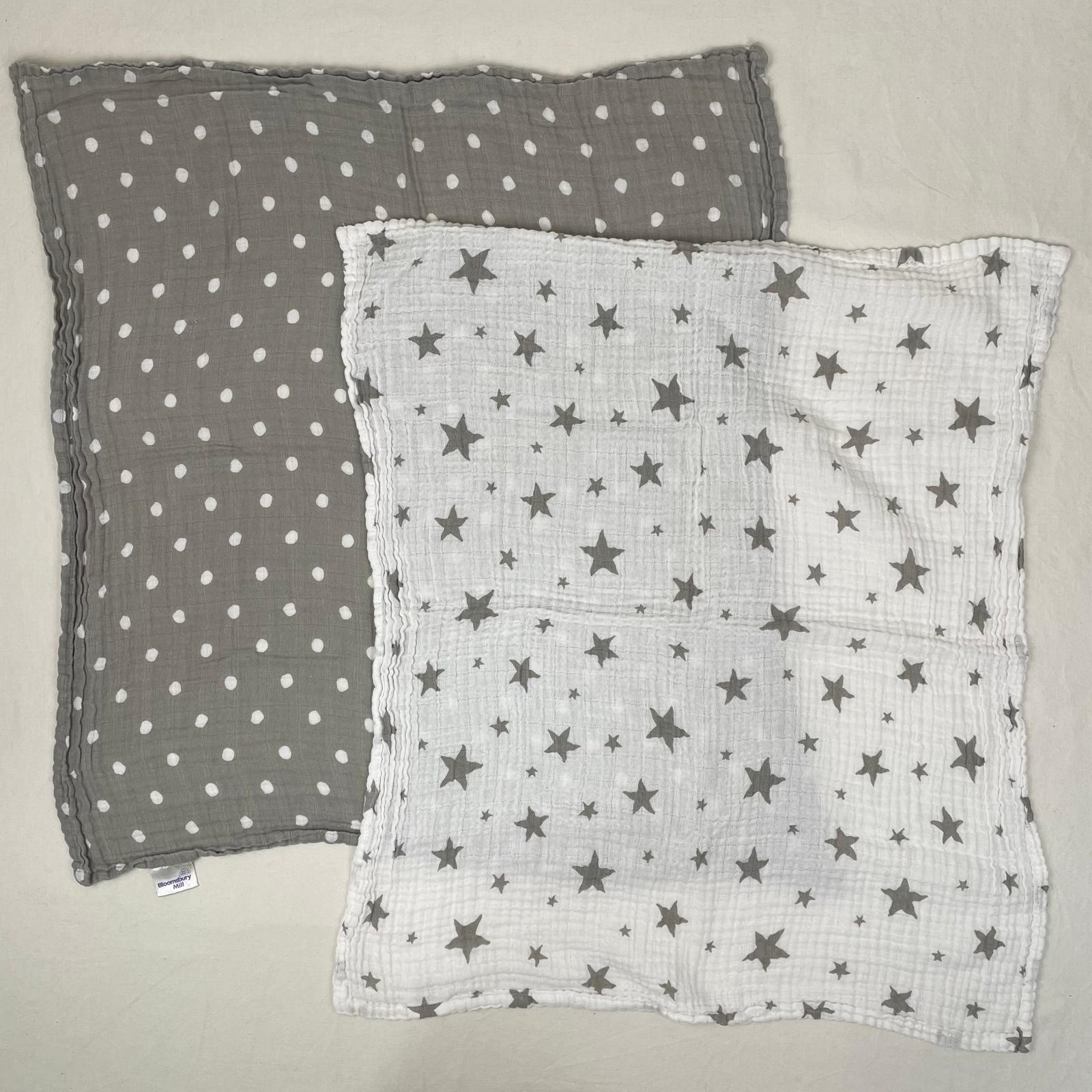 Autres commentaires : Lot de 2 foulards fins : -1 gris à pois blancs ; -1 blanc à motif étoilé gris.