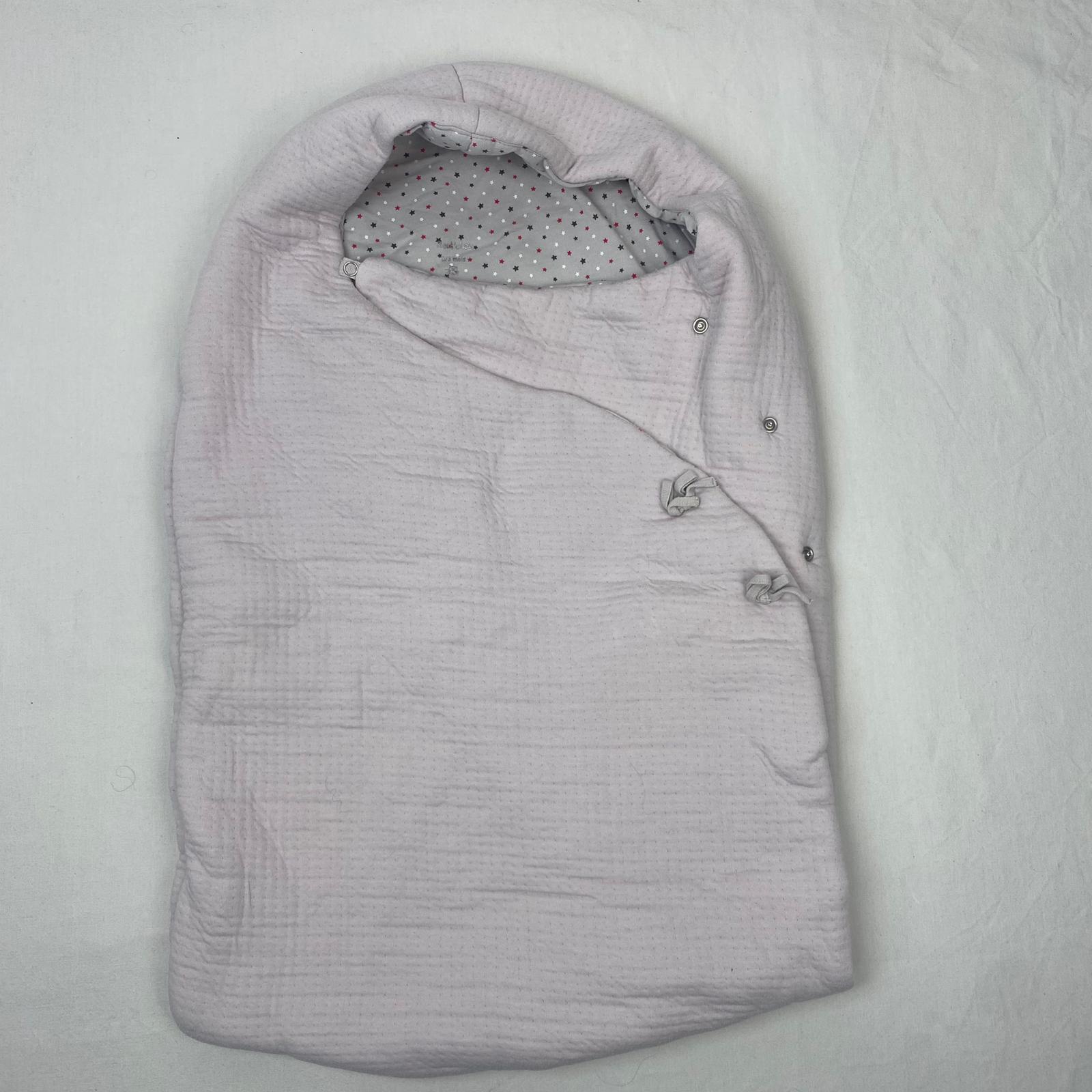 Autres commentaires : 25% polyester. Taille 0-3M. Nid d’ange à capuche en tissu gaufré de couleur taupe, doublure en 100% coton parsemé de mini étoiles blanches, rouge-framboise et gris foncé, garnissage 100% polyester, fermeture croisée devant par boutons pression.