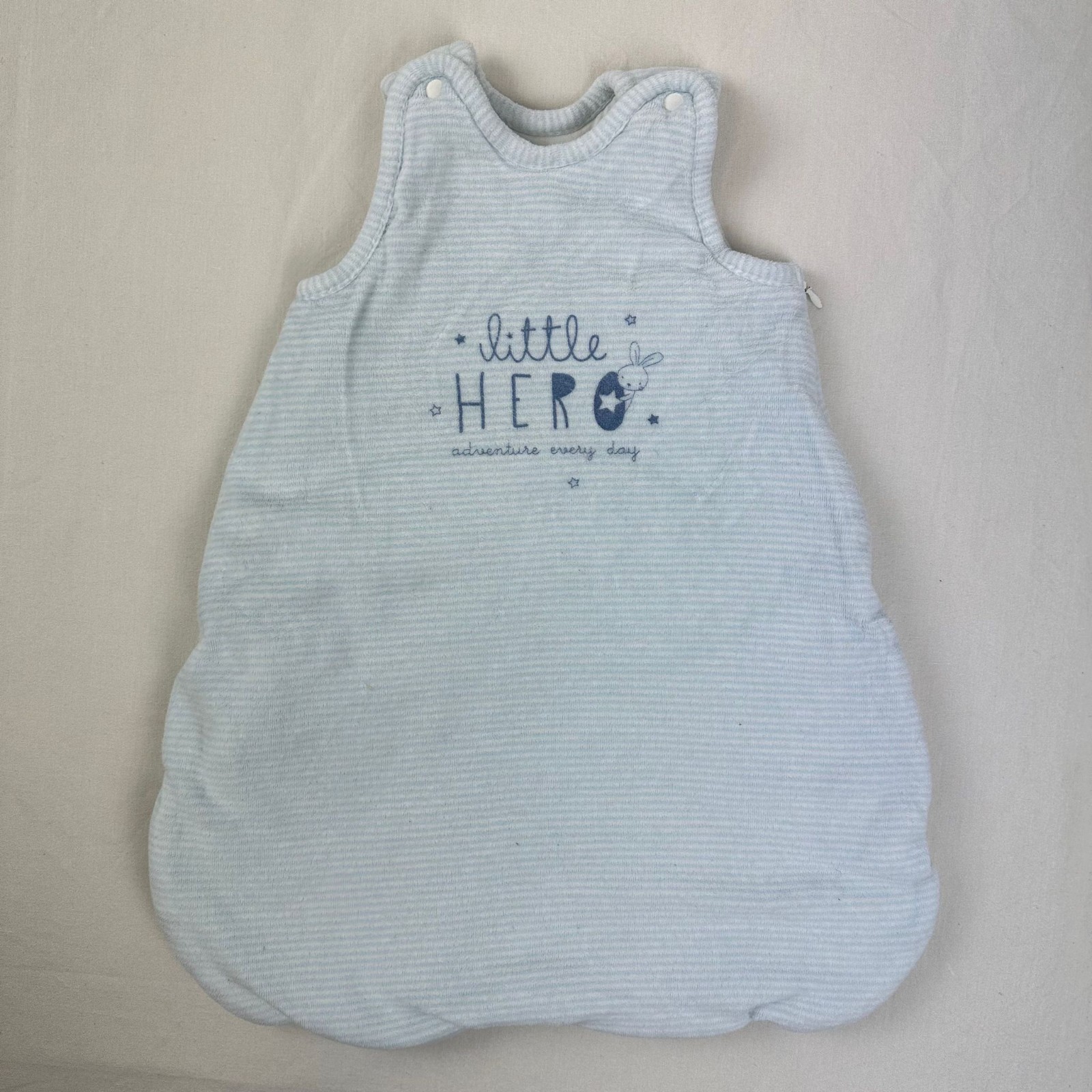 Autres commentaires : Gigoteuse sans manches bleu avec rayures blanches et une fermeture en zip.