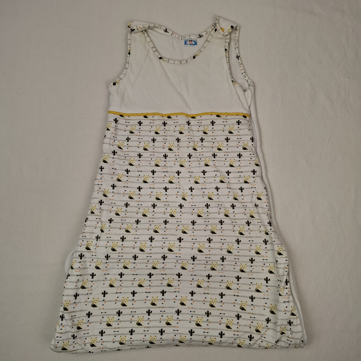 Autres commentaires : Gigoteuse blanche parsemée de renards, fermeture au niveau des bretelles par boutons pression et par zip.