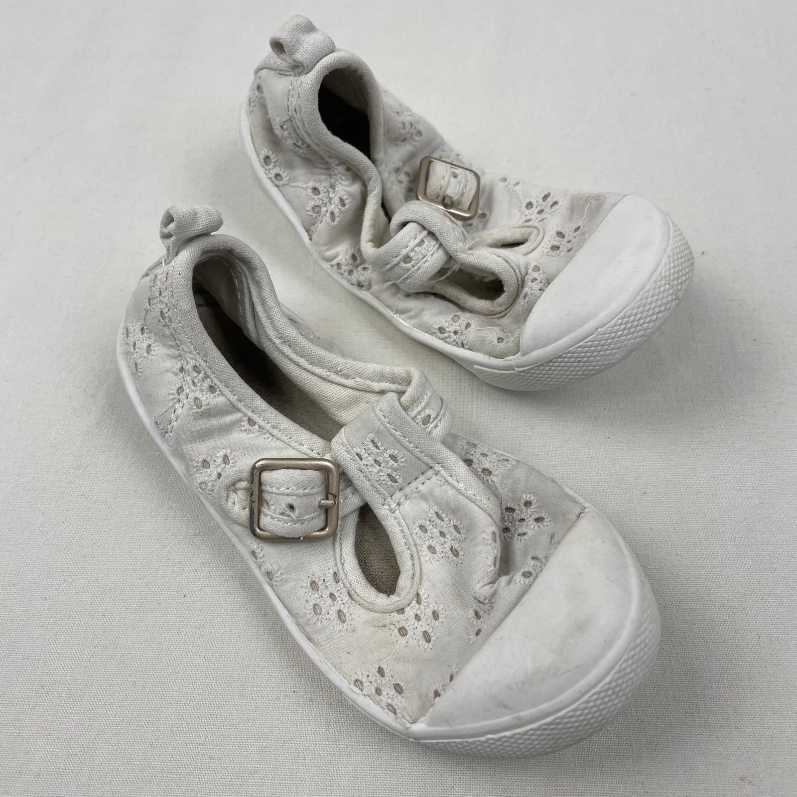 ballerines blanches en toile brodée avec semelles en caouchouc.