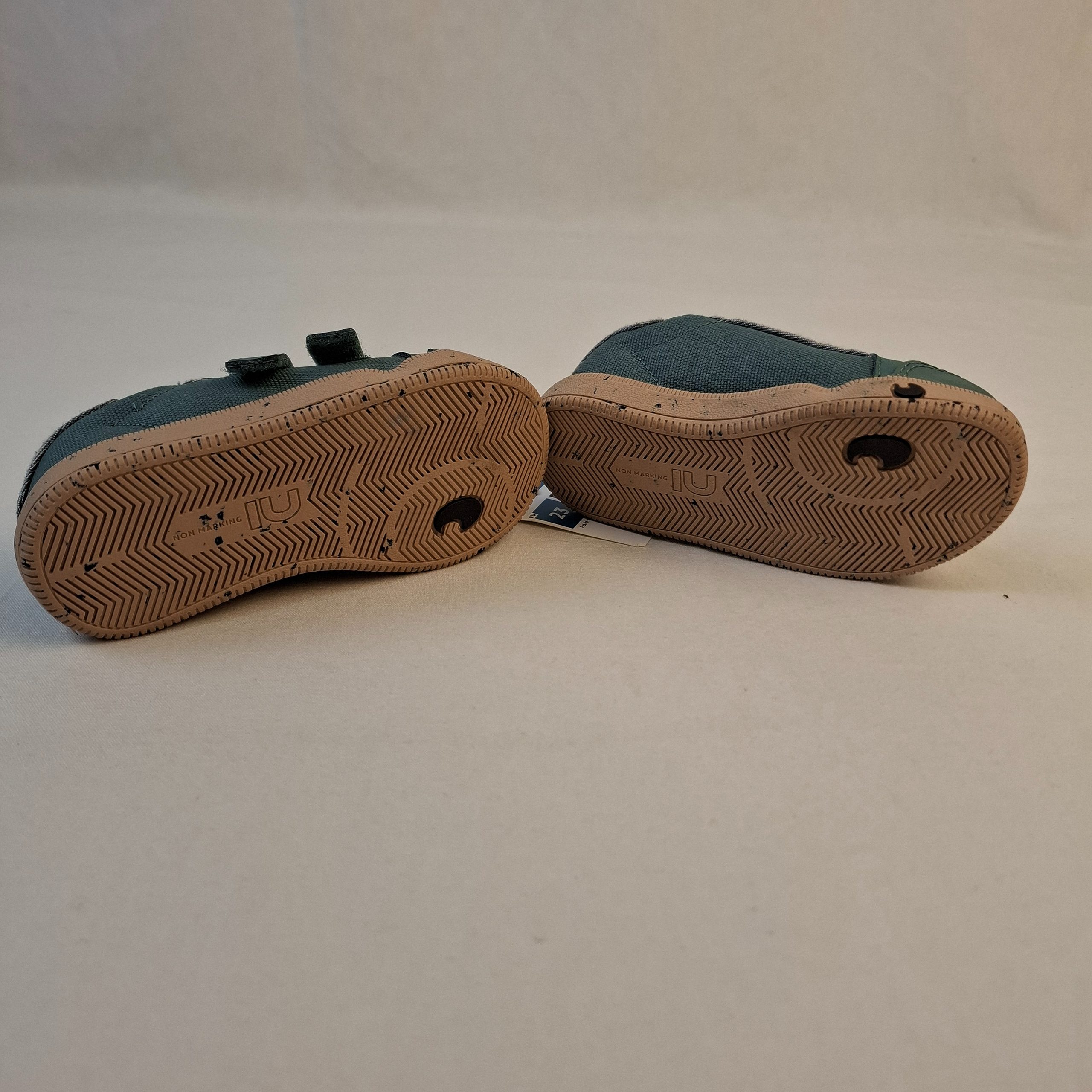 - Baskets vert menthe à scratchs, semelles « Non Marking ».