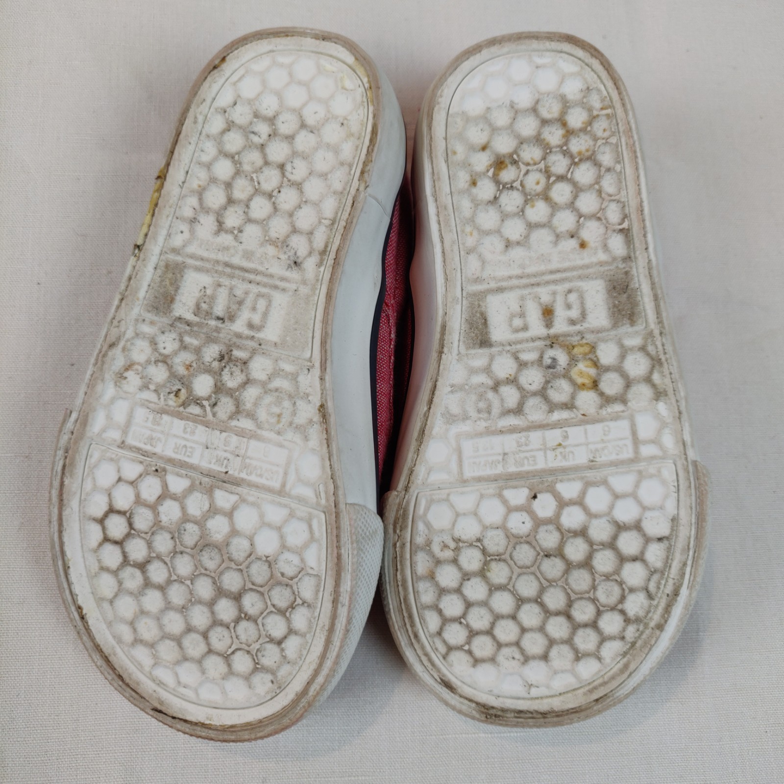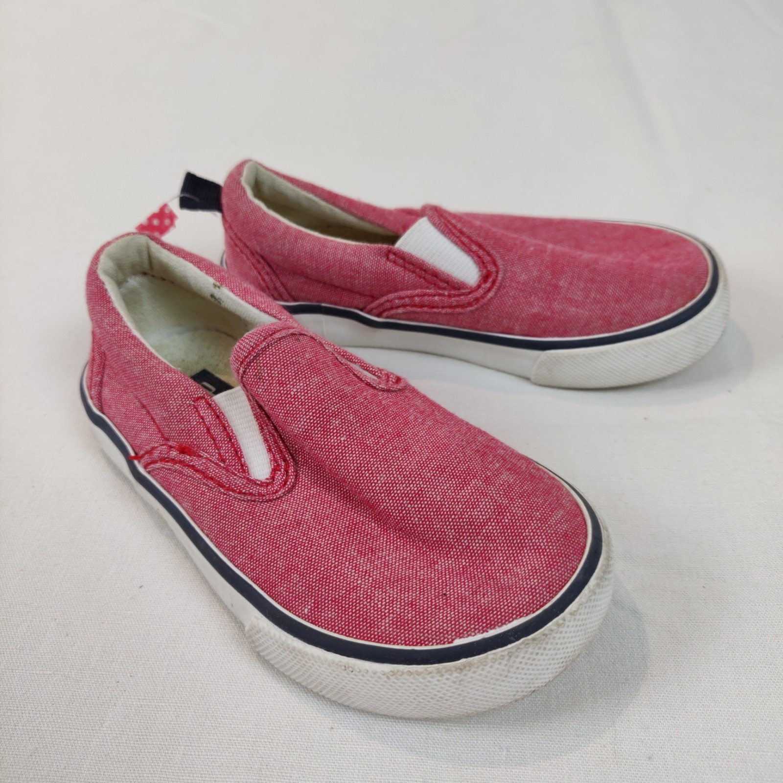 Autres commentaires : Baskets modèle slip-on en tissu rouge chiné.