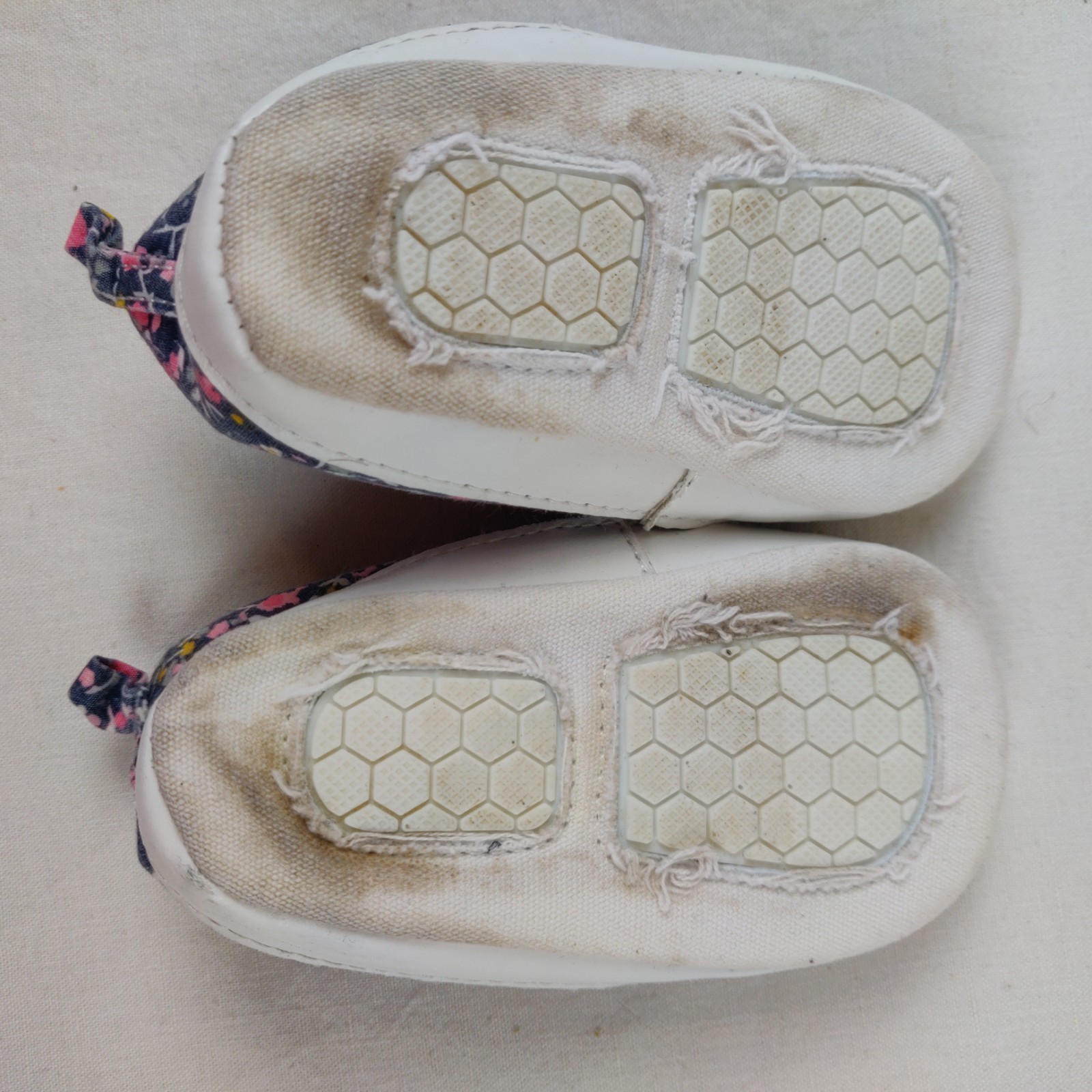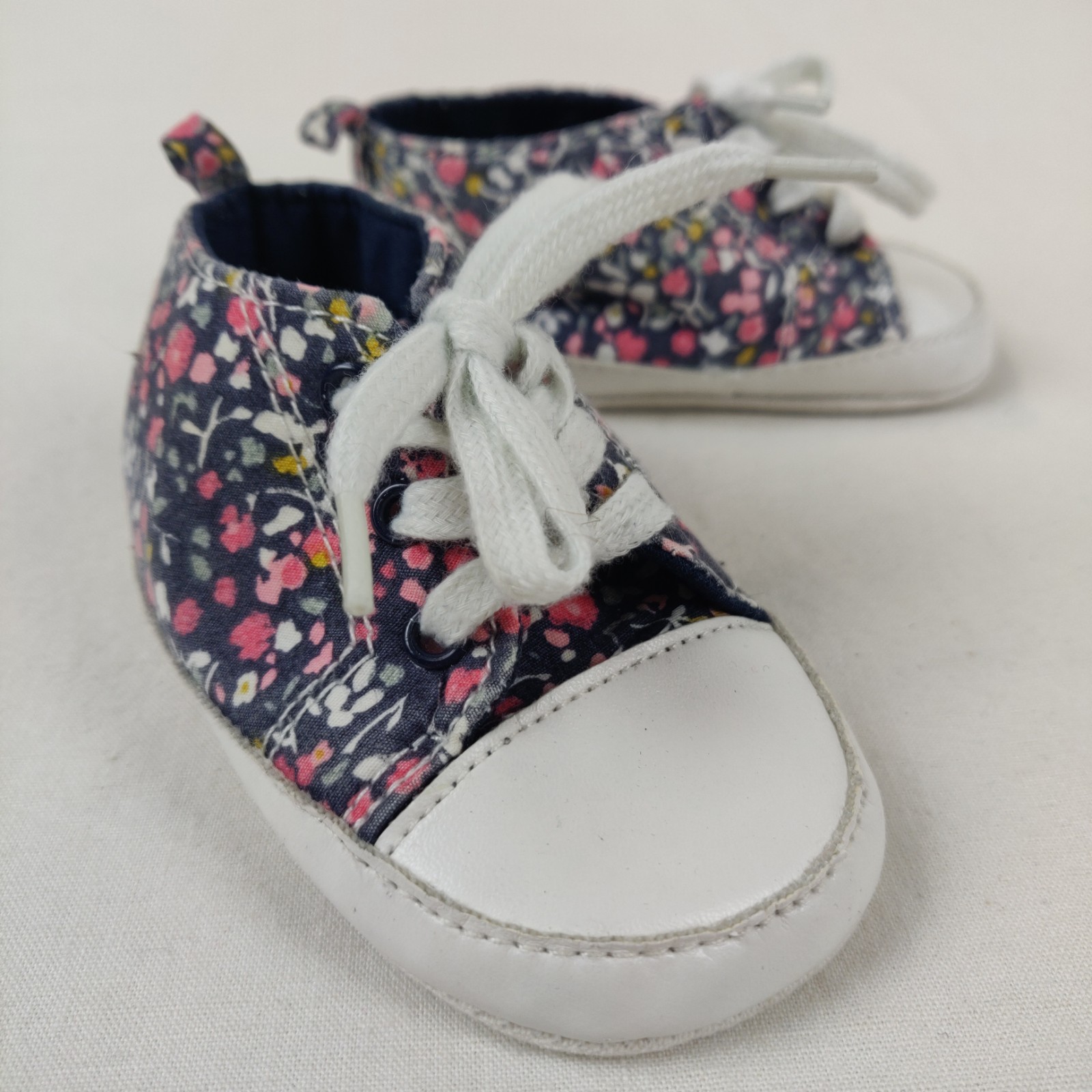 Autres commentaires : Baskets montantes en tissu – bleu marine. Motifs floraux multicolores. Ouverture centrale à lacets. Usure normale.