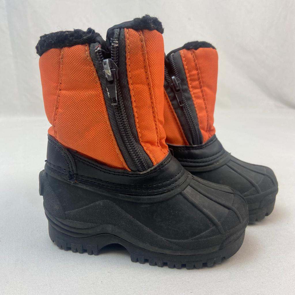 Autres commentaires : Bottes de niege noir et orange, doublée en fourrure synthétique noire, fermeture à soufflet par zip en latéral, qui permet de les enfiler et les enlever facilement.