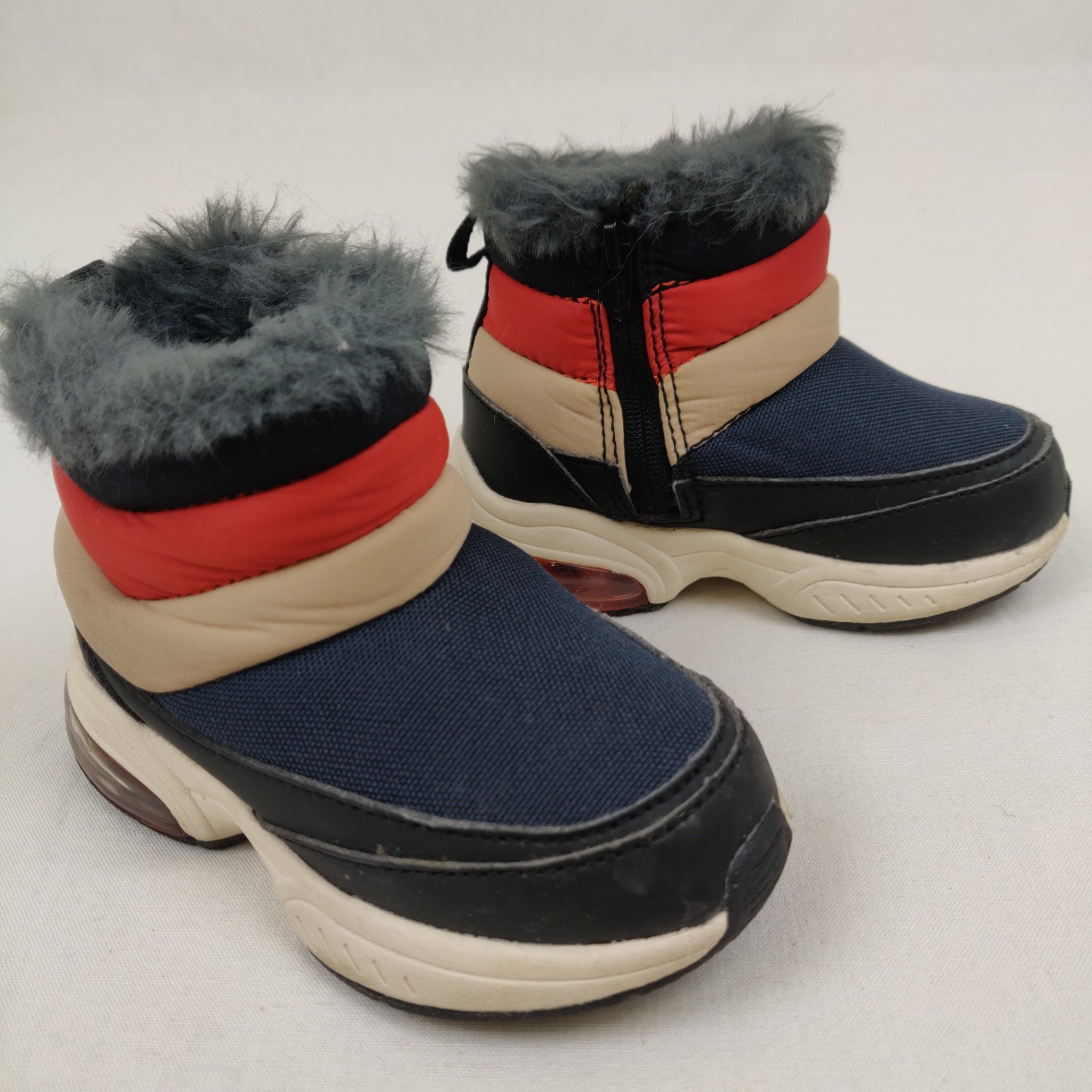 Autres commentaires : Bottes de neige bleu avec haut beige et orange avec intérieur en fourrure gris.