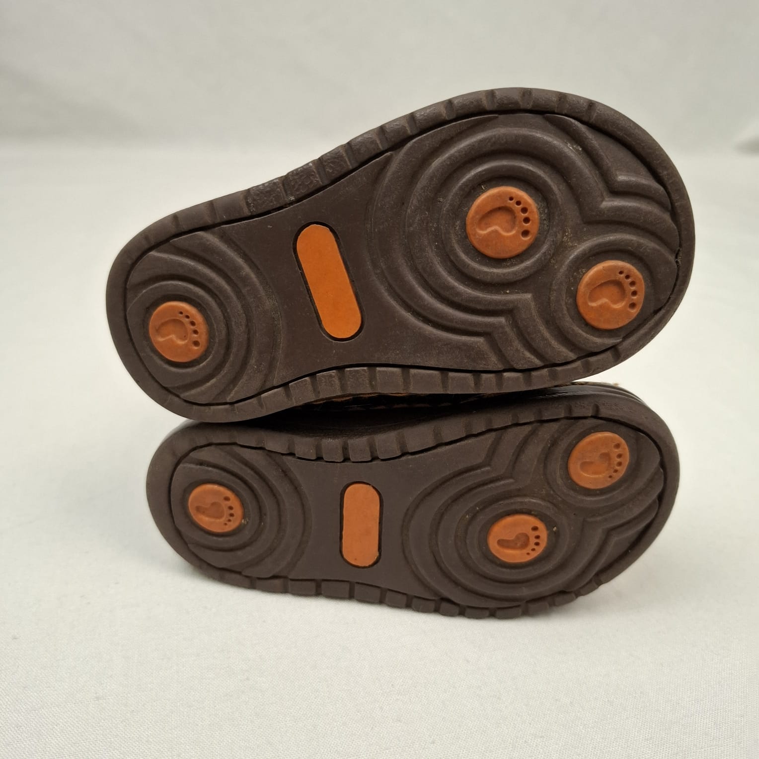 Autres commentaires : bottines marrons en cuir, fermeture par zip et scratch