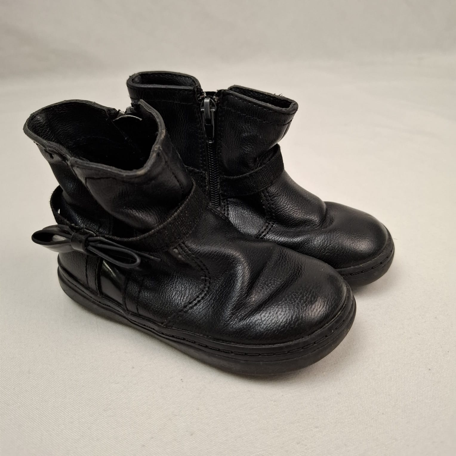 Autres commentaires : Bottines en cuir noir, fermeture par zip
