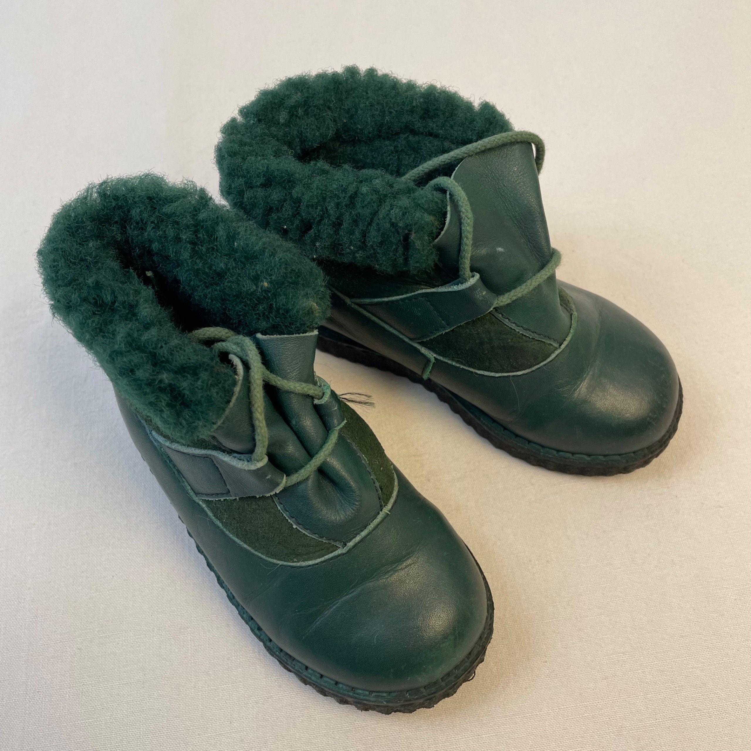 - Chaussures montantes vertes à lacets, doublure en fourrure