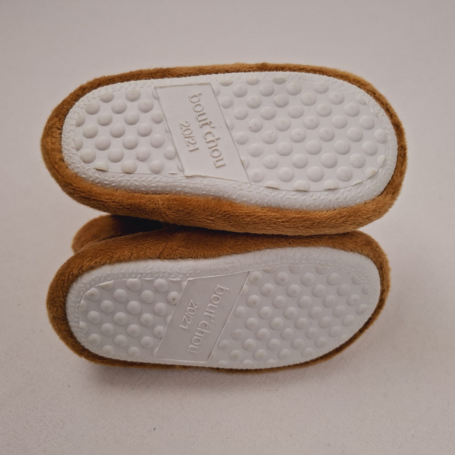 Autres commentaires : Chaussons marron en forme de nounours en tissu doux, semelles antidérapant