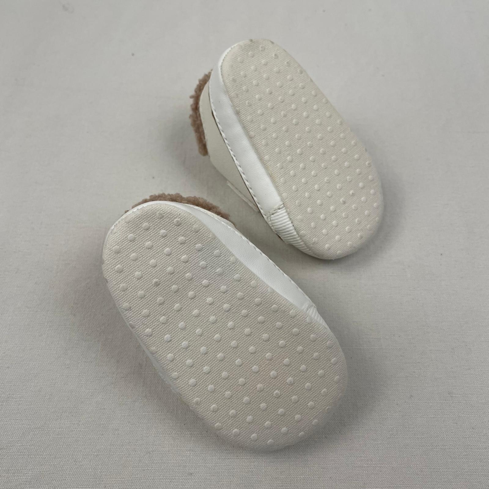 Chaussures à scratch avec bout en moumoute et motif ourson sur le scratch.