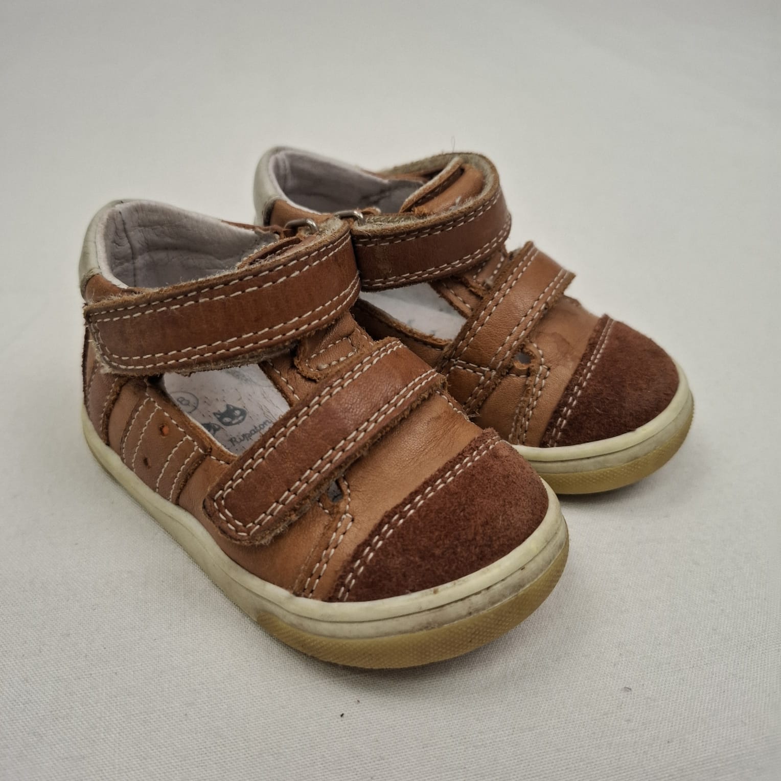 Autres commentaires : Chaussures marron en cuir, doublure et semelle intérieure en cuir, fermeture par scratch.
