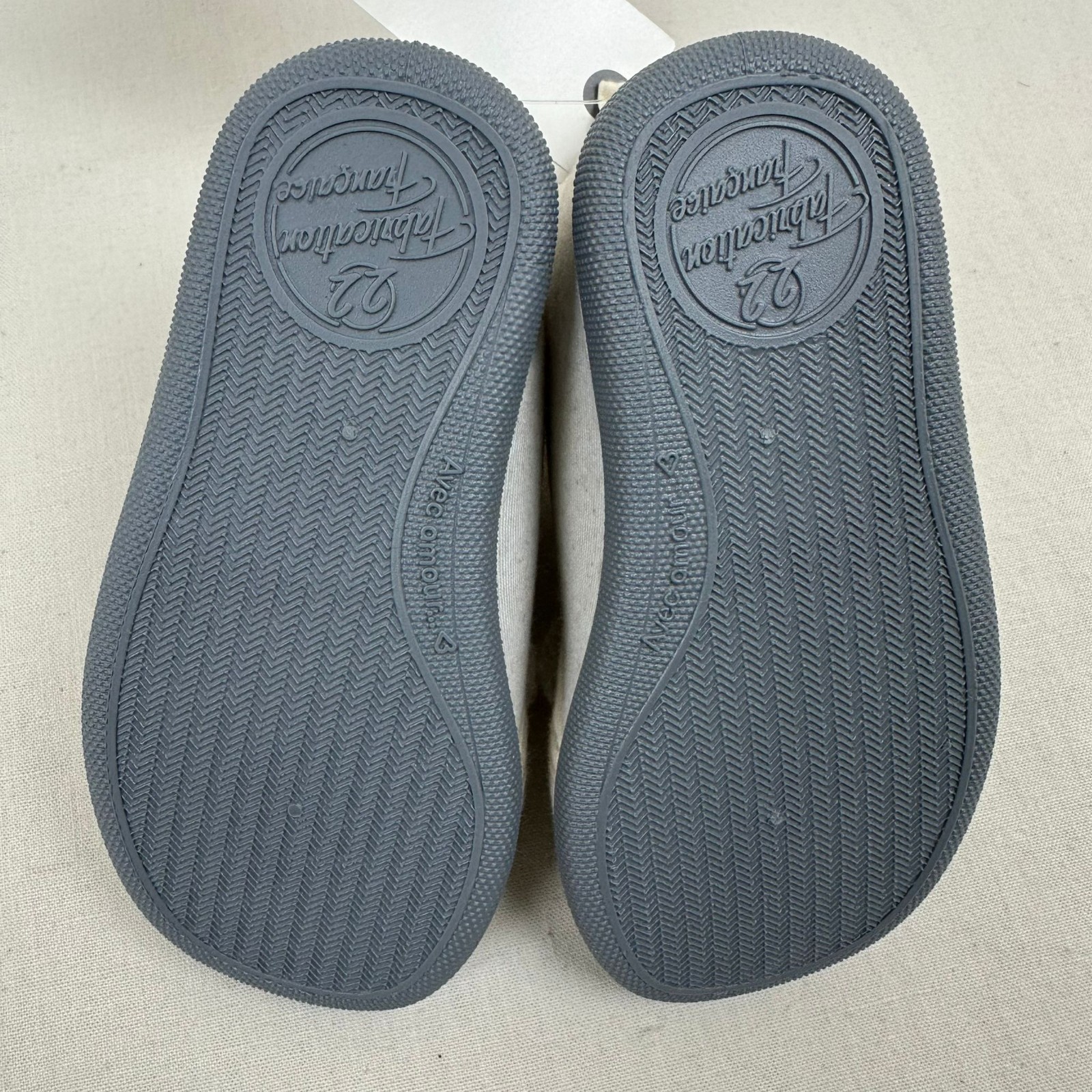 Autres commentaires : Chaussure bébé beige avec motif chat et une fermeture en zip.