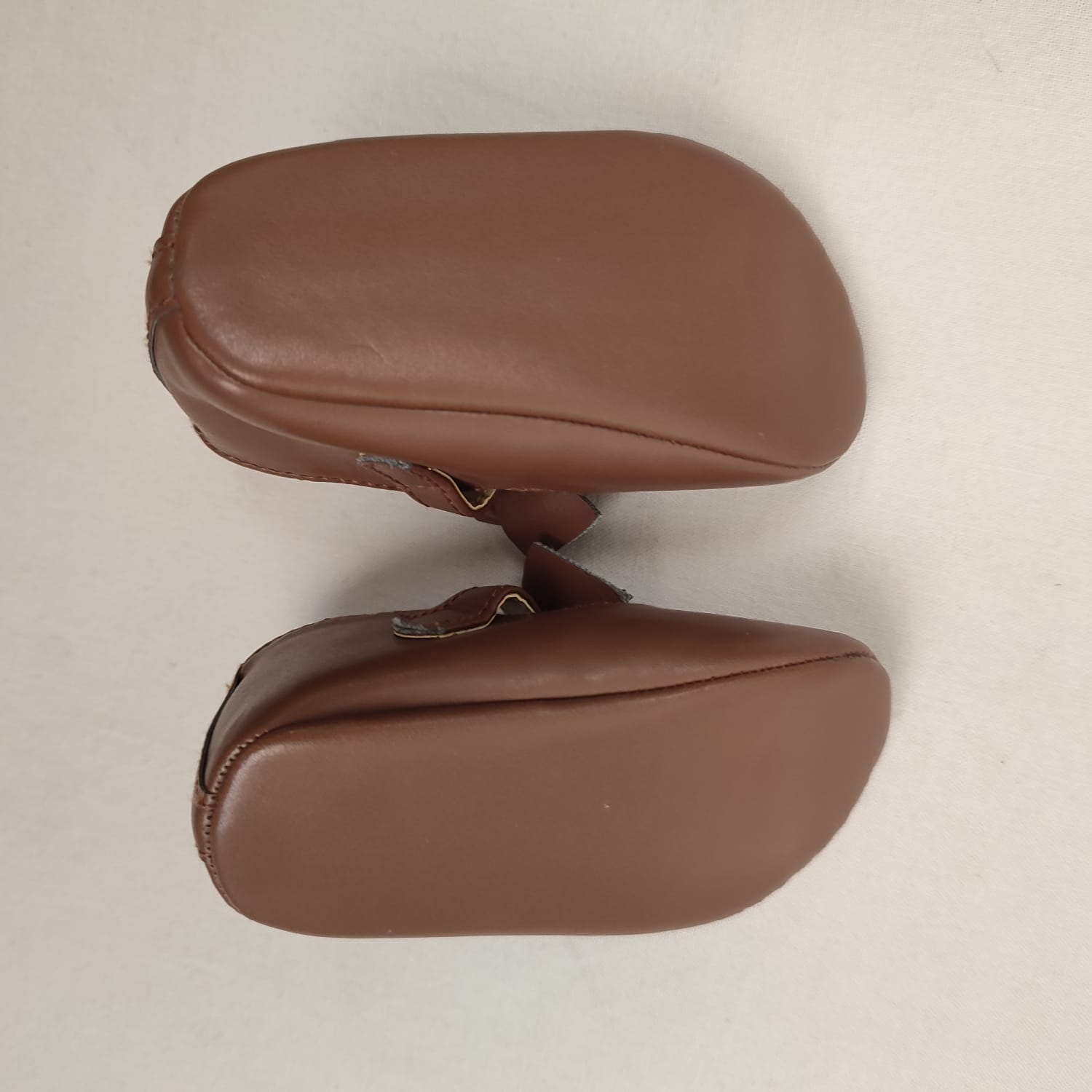 Autres commentaires : Ballerines babies marron uni, à bout rond, noeud devant au niveau de la bride, fermeture latérale par scratch, semelle souple. Taille : 3 à 6 mois.