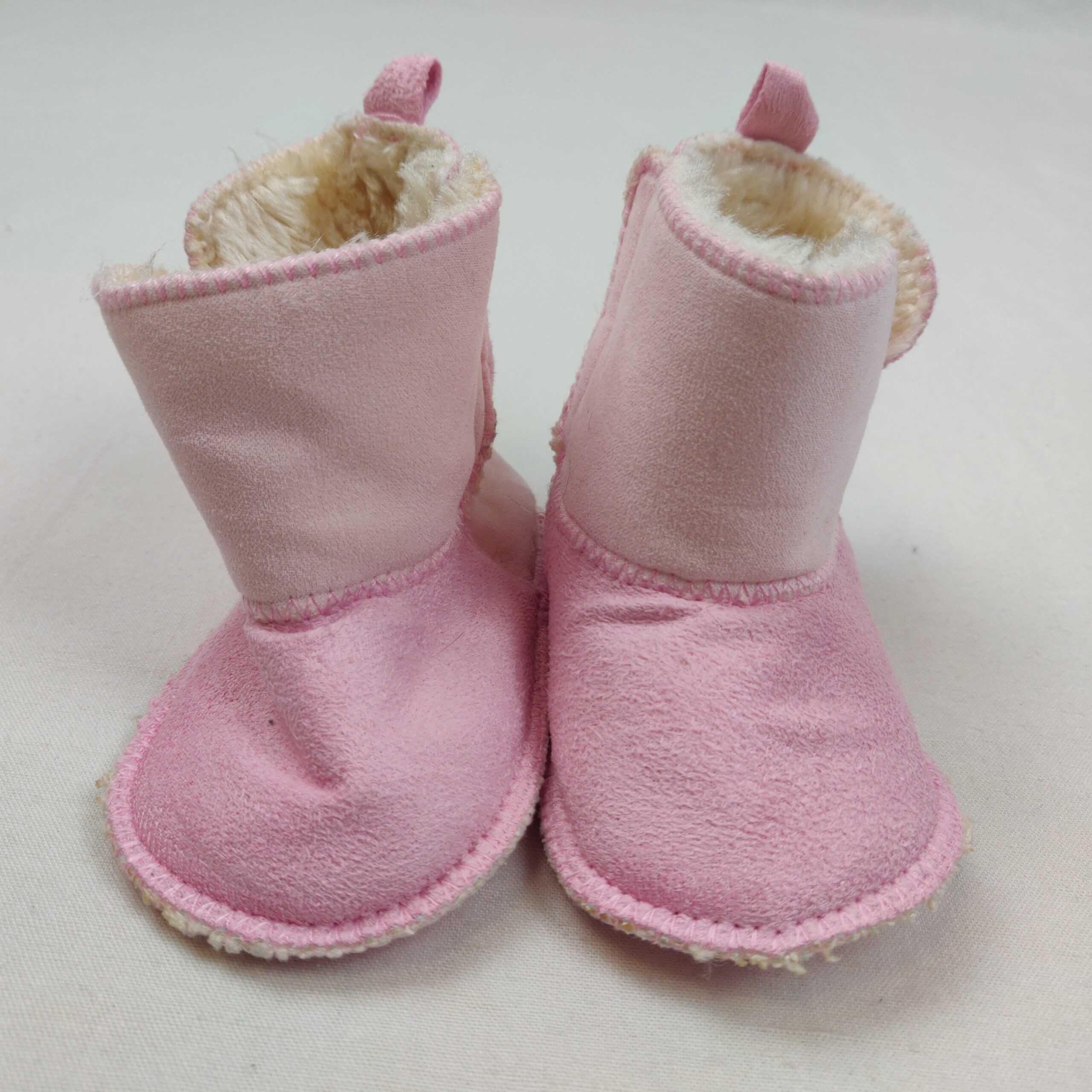 Autres commentaires : Bottines en imitation nubuk rose, fourrées, fermées par un scratch