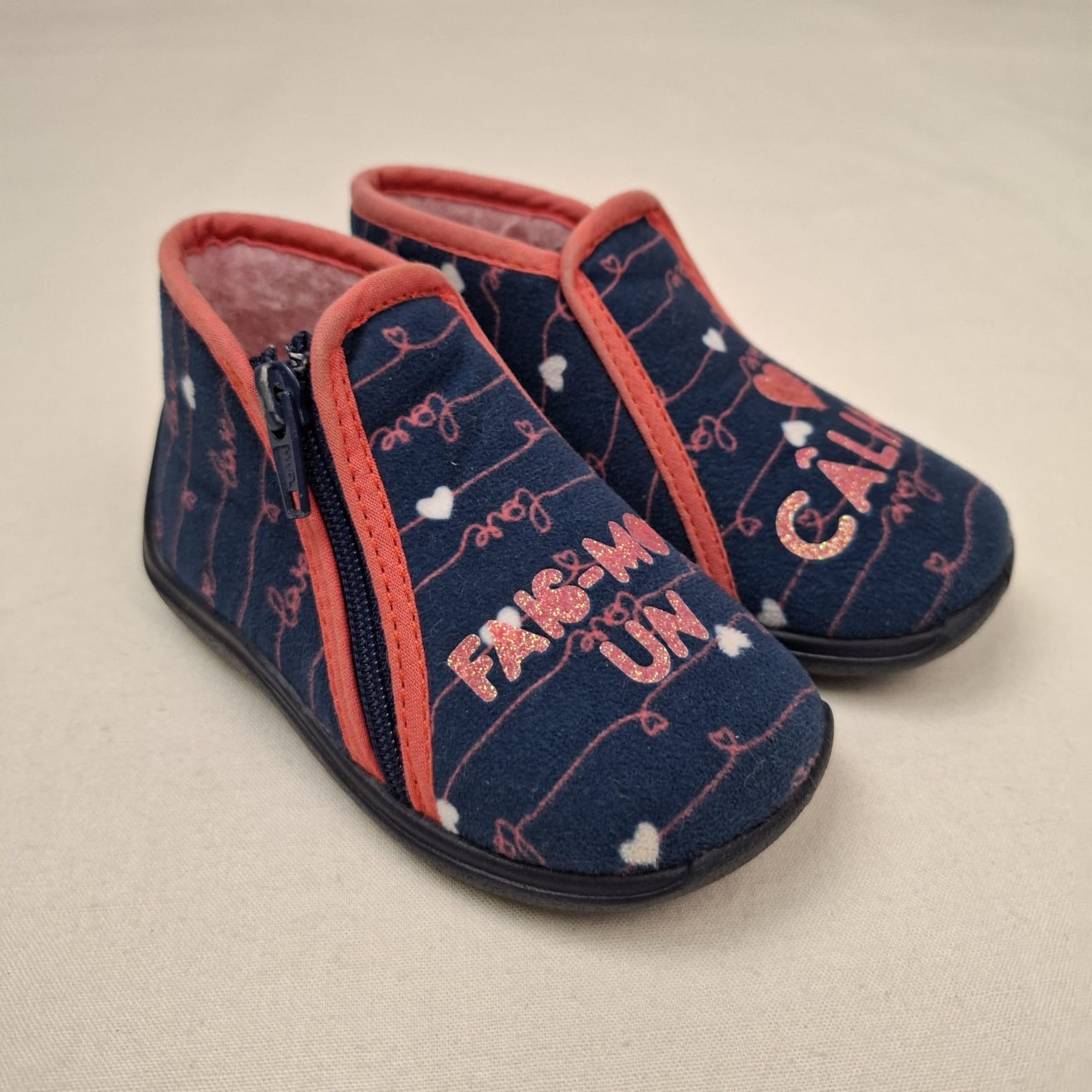 Autres commentaires : Chaussures bébé Tooti bleu marine et rose, fermetute par zip.