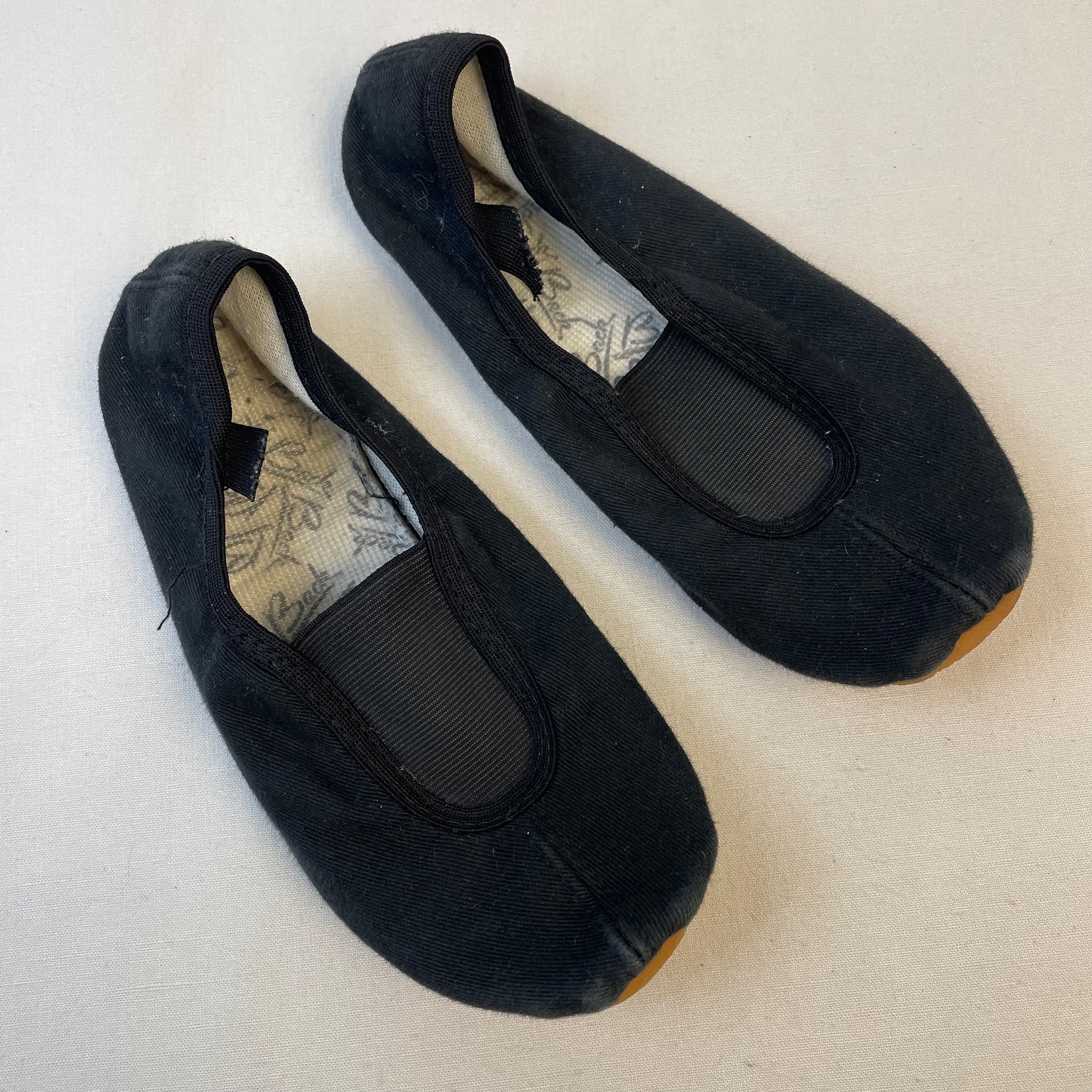 - Chaussons de gym et de danse, en tissu noir.