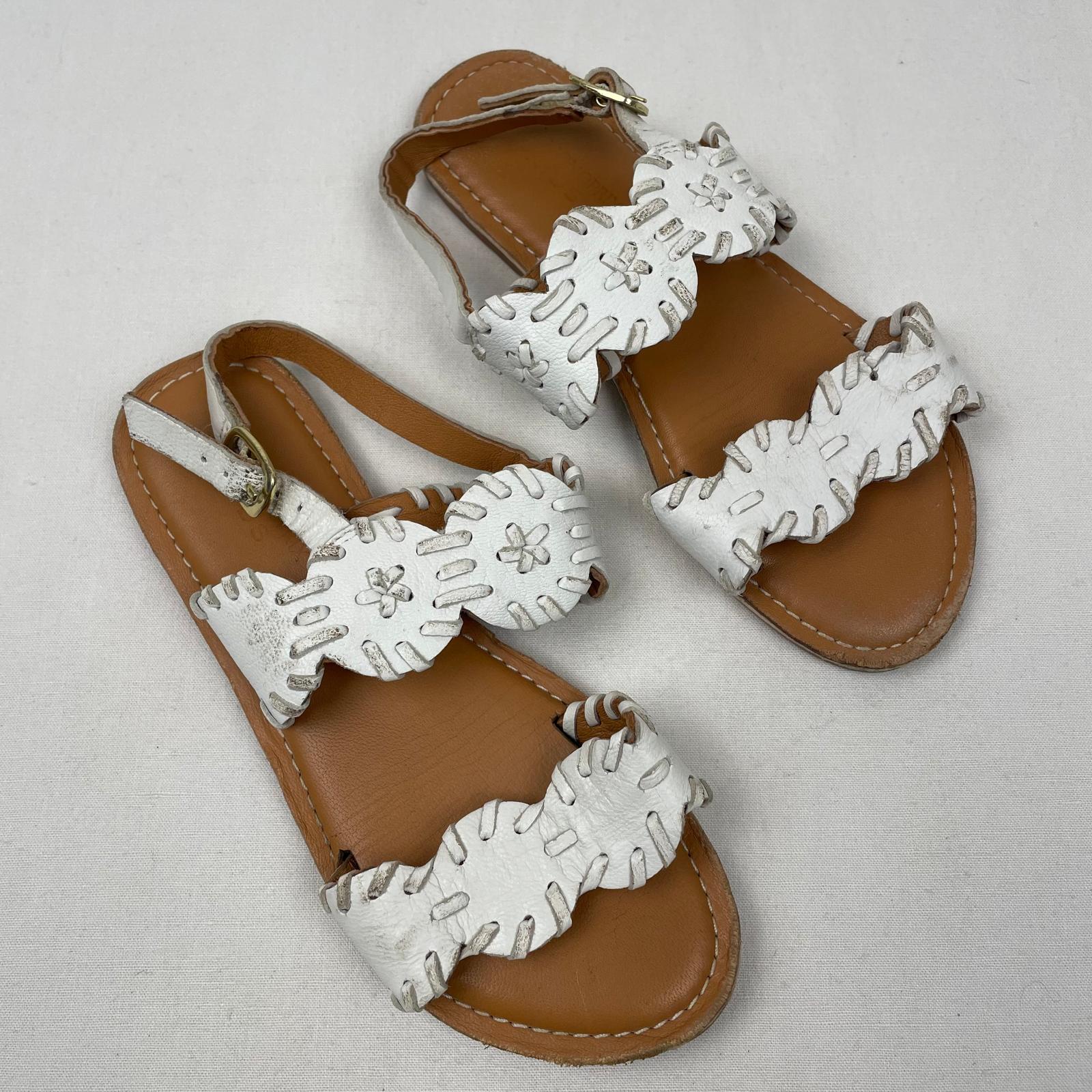 Autres commentaires : Sandales à boucle. Légère usure de la semelle et blanc un peu grisailleux. Niveau réduit de Fraise à Myrtille.