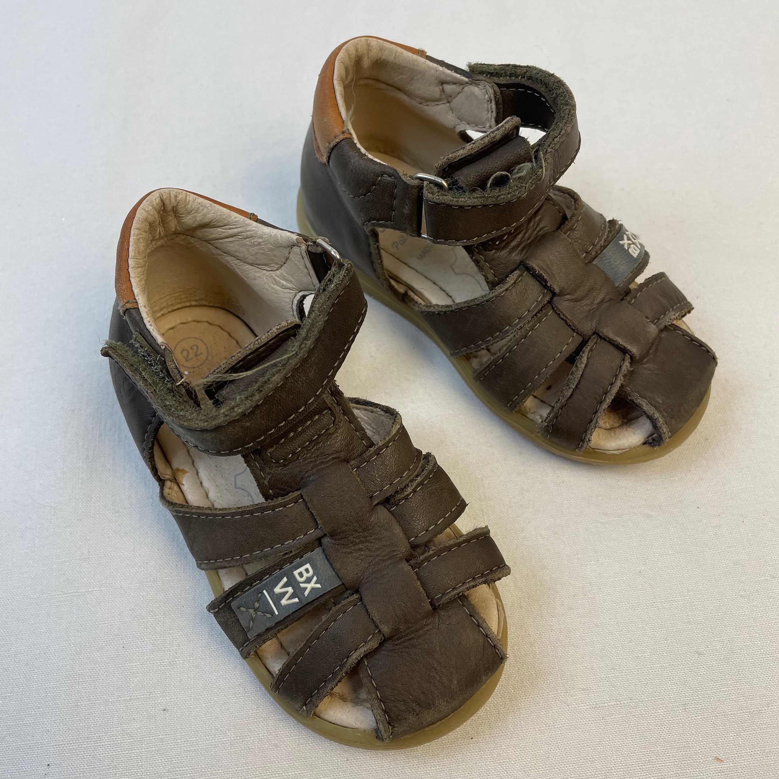- Sandales, fermeture par scratch, à recirer un peu.