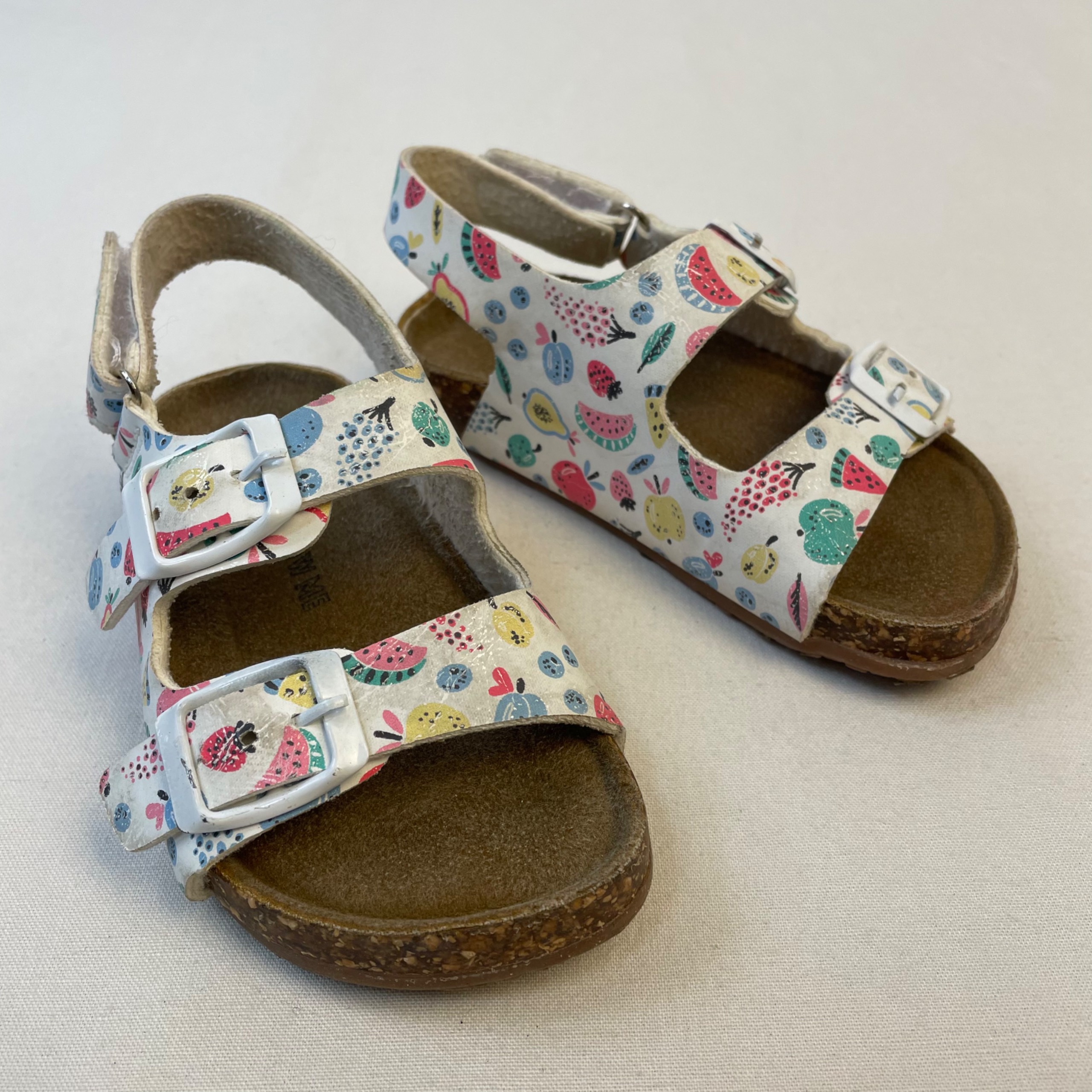 - Sandales blanches à boucles à motif fruits