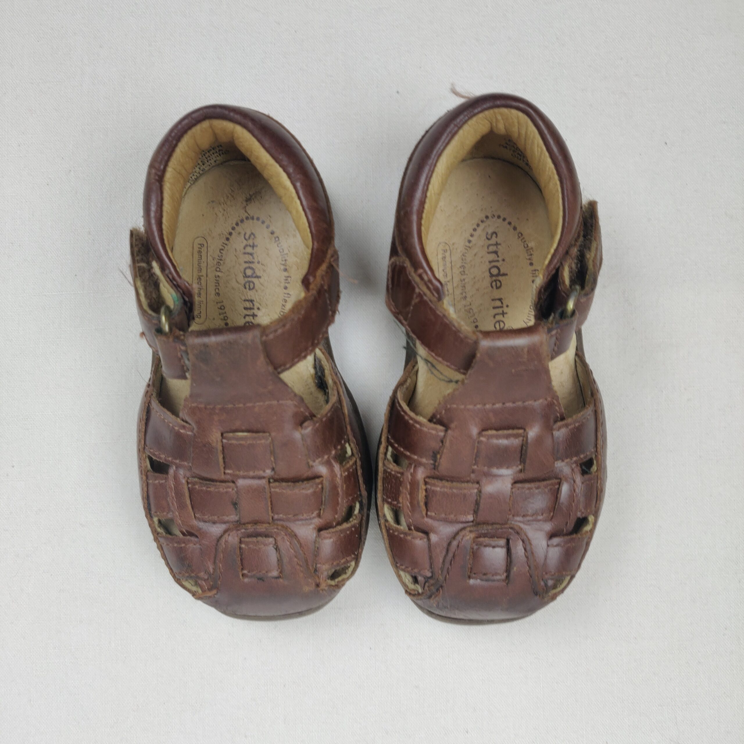 Autres commentaires : Sandales à scratch marron tressé, en cuir intérieur et extérieur, Pointure 20,5.