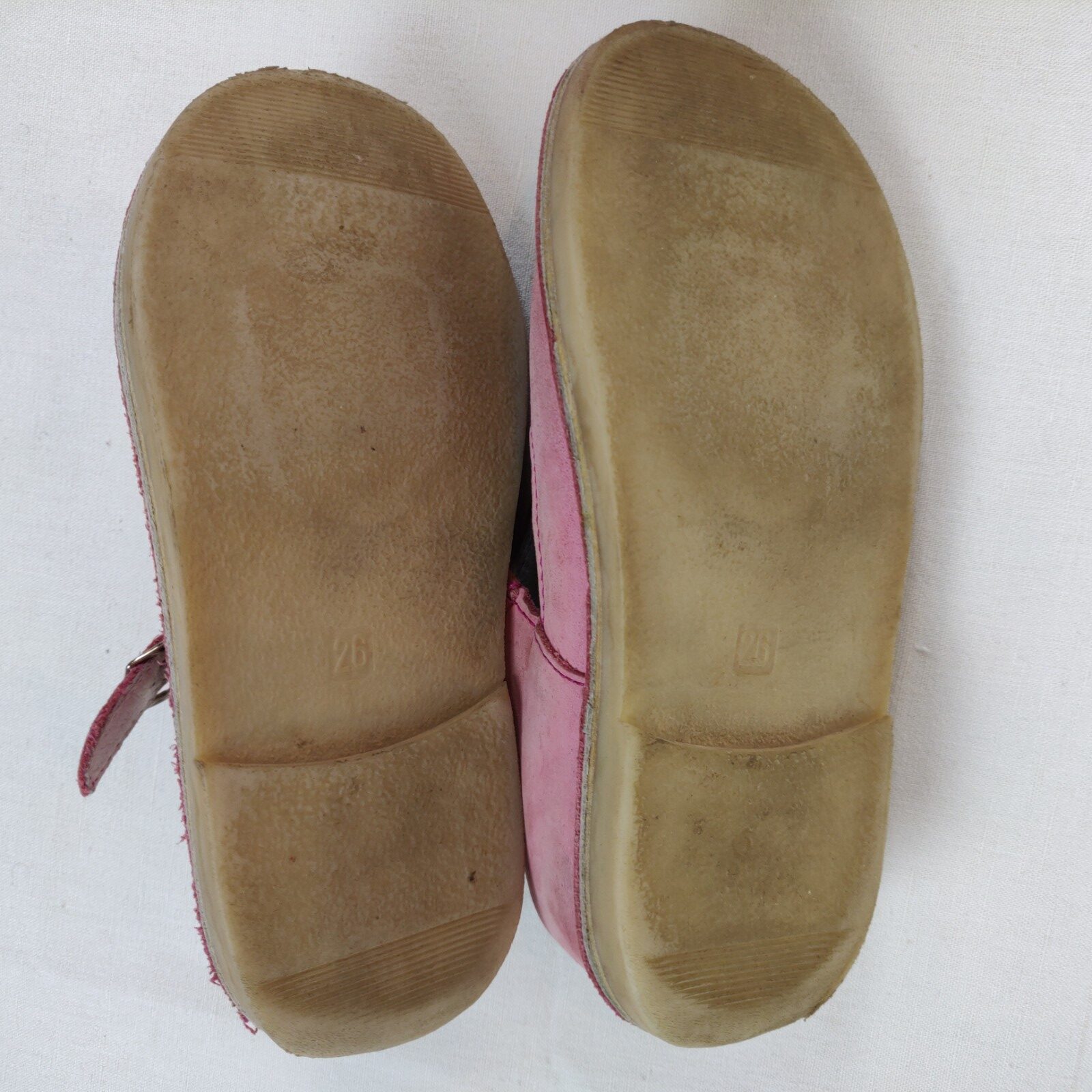 Autres commentaires : Sandales salomé en daim – rose. Chaussure droite présentant quelques tâches sur le devant. Niveau réduit de kiwi à fraise
