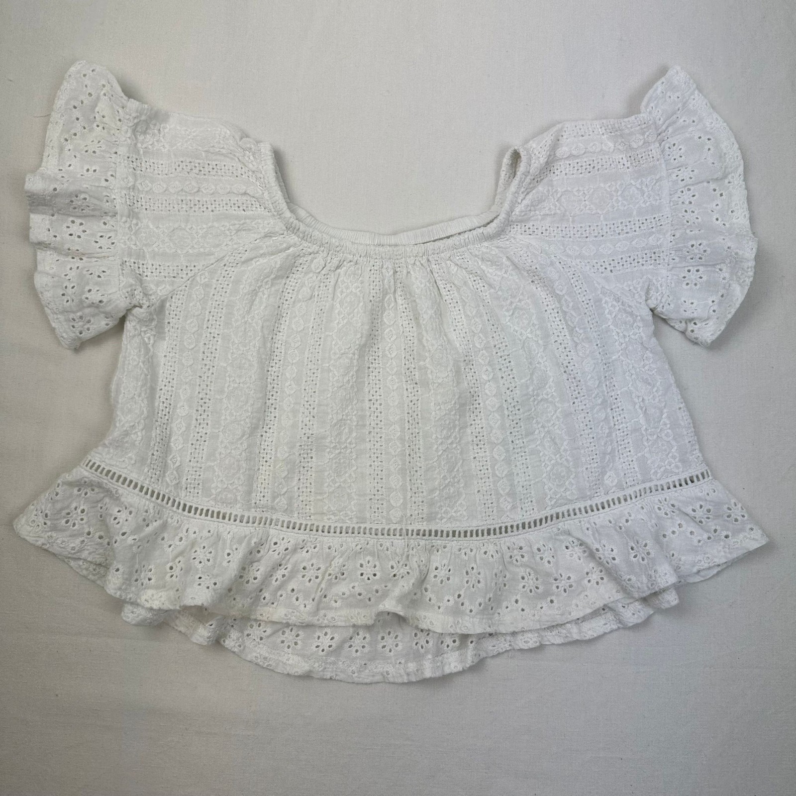 Autres commentaires : Blouse manches courtes en dentelles blanc et col bateau.