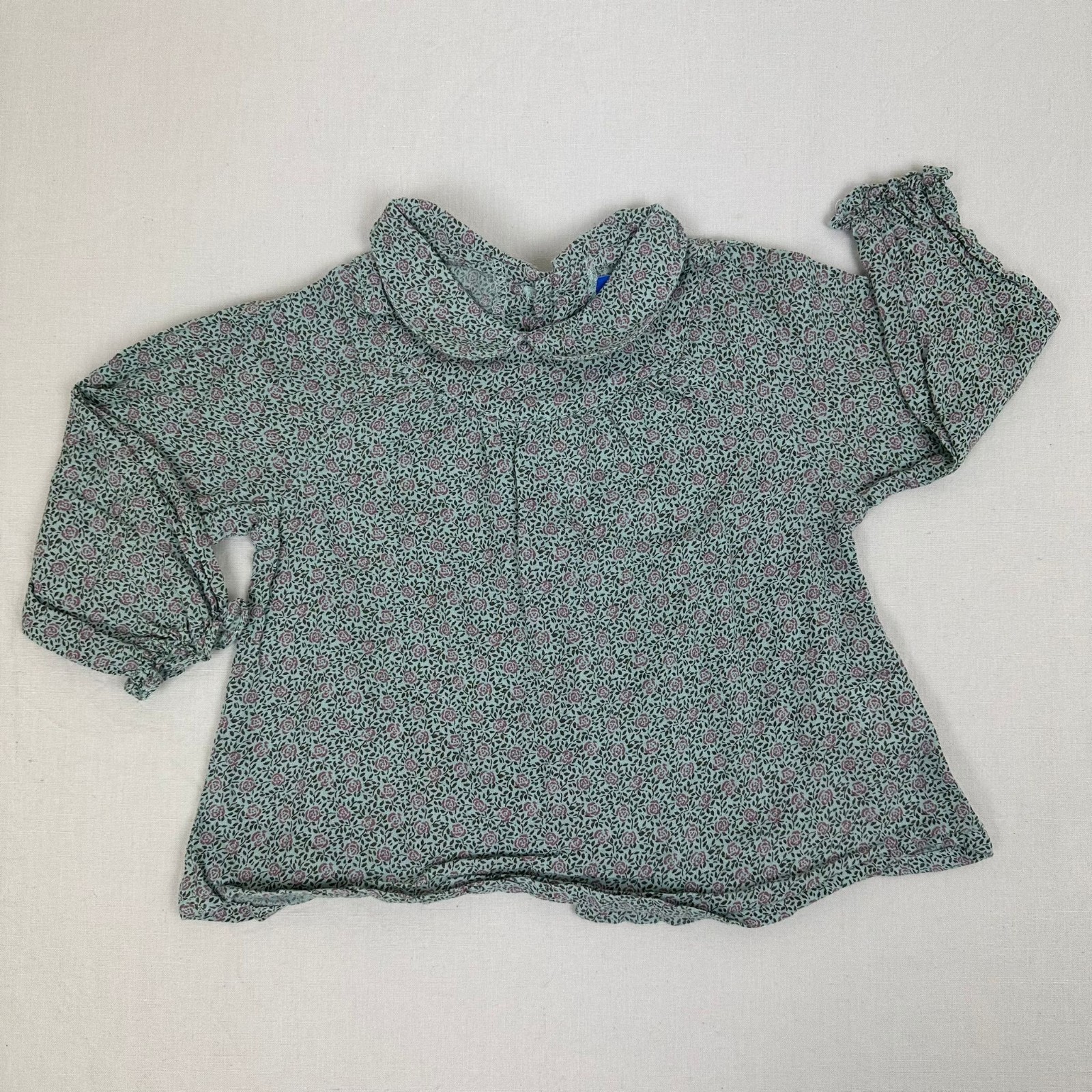 Autres commentaires : Blouse manches longues vert fleurie avec col claudine et une fermeture au dos par boutons.