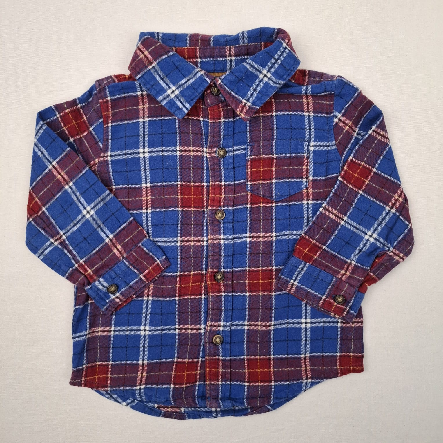 Autres commentaires : Chemise épaisse manches longues carter’s 18M bleu et rouge à carreaux avec boutons de fermeture à l’avant