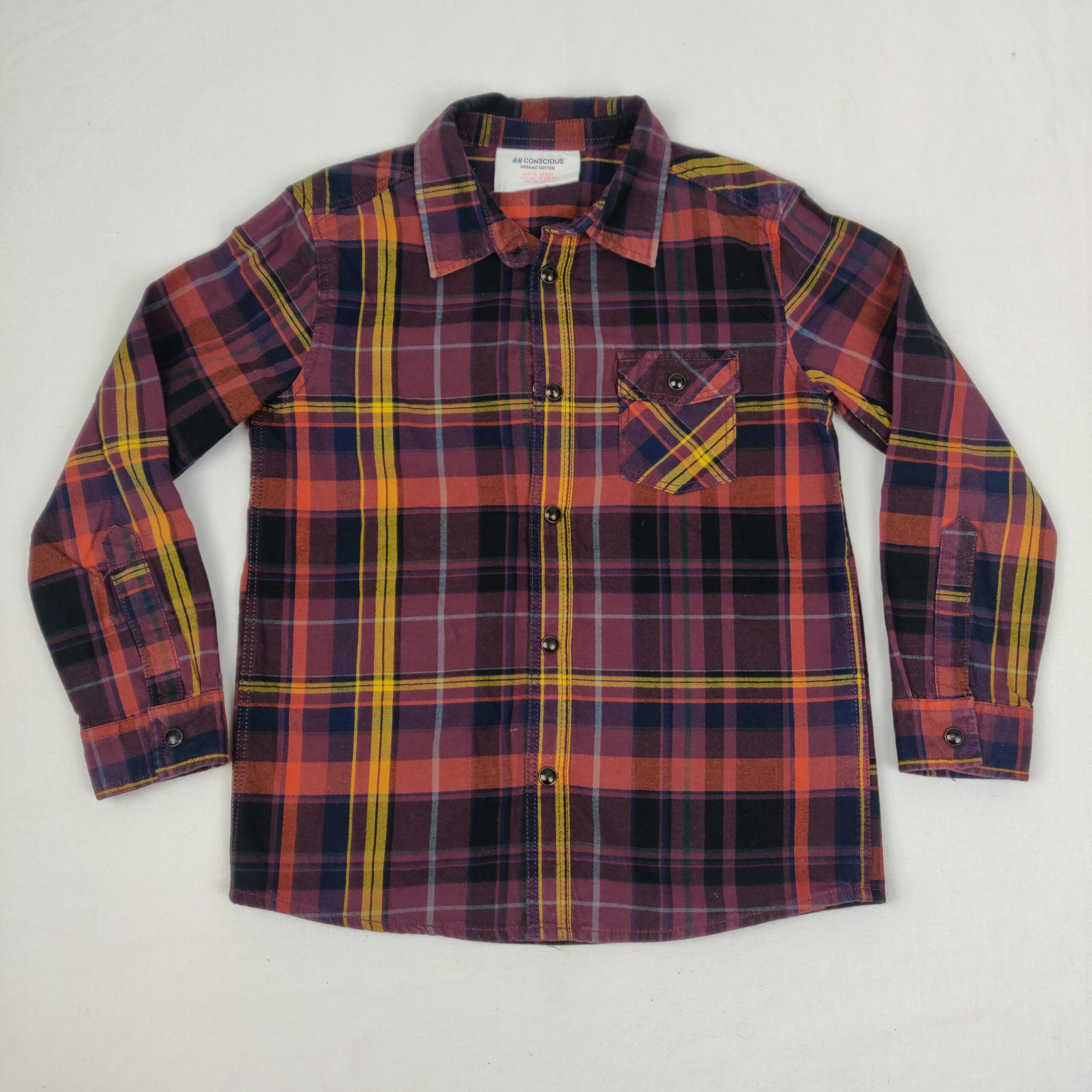 Autres commentaires : Chemise manches longues, épaisse motif écossais de couleur violet, orange et jaune de la gamme Conscious de H&M
