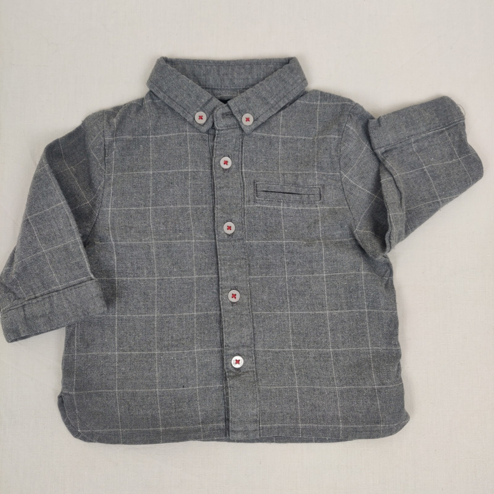 Autres commentaires : Chemise manches longues grises à carreaux. Contient des petites bouloches d’usage.