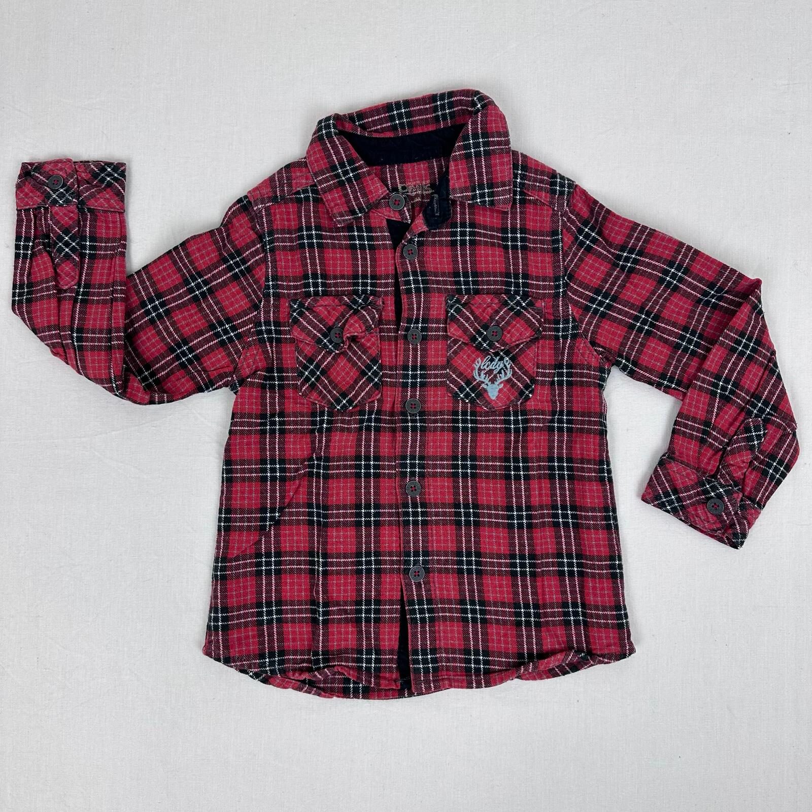 Autres commentaires : Chemise manches longues rouge à carreaux et rayures fines noir,blanc et gris.