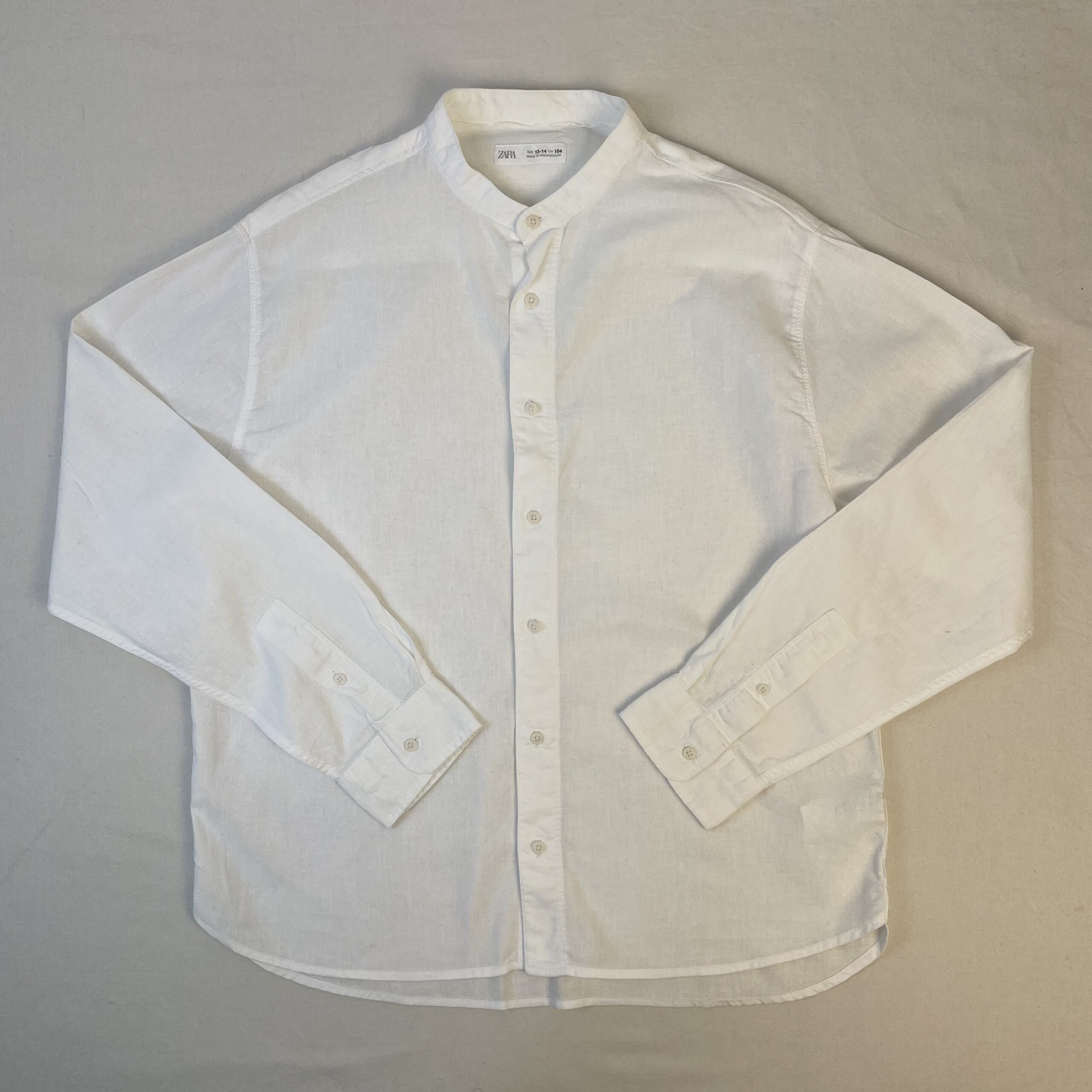 - Chemise Zara d’un blanc éclatant avec un col rond