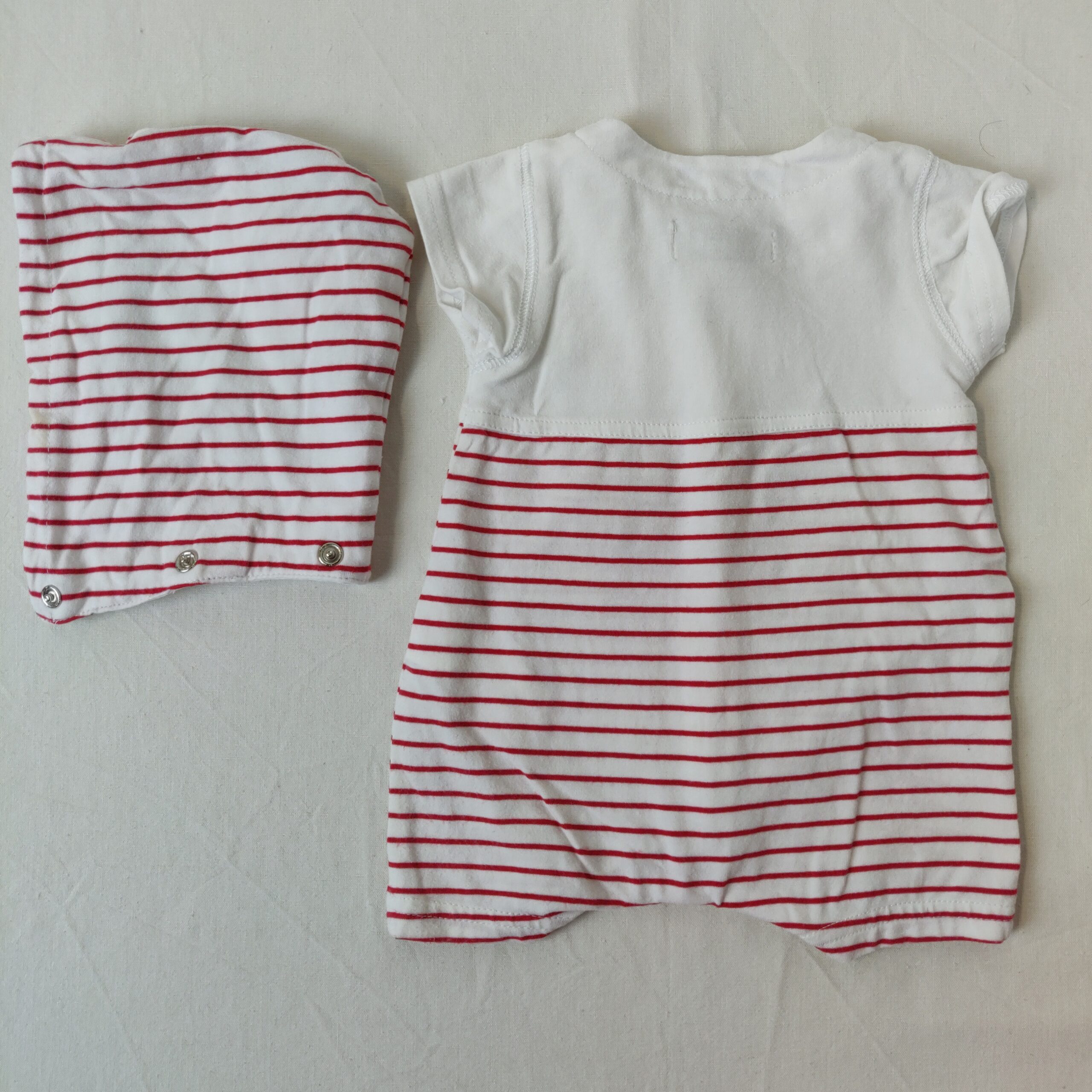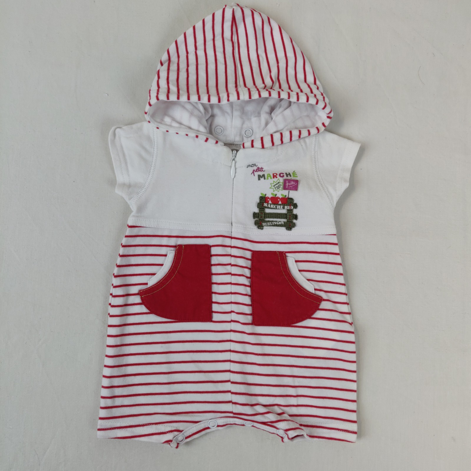 Autres commentaires : Combicourt blanc à rayures horizontales rouge. Capuche détachable.
